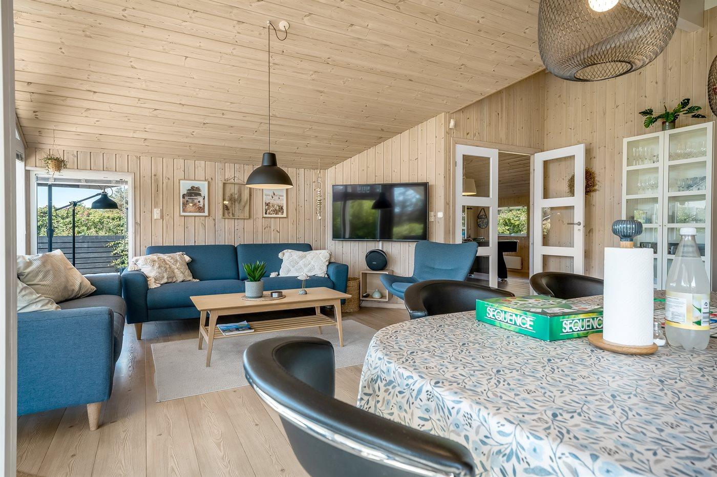 Sommerhuset egner sig til 6 personer. Ferieboligen er på 120 m² og er bygget i 2015. Det er ikke tilladt at medbringe husdyr. Ferieboligen er udstyret med energibesparende varmepumpe. Ferieboligen har vaskemaskine. Tørretumbler. Frysekapacitet på 50 liter. Der er desuden brændeovn. Til de små er der 1 stk. barnestol.
