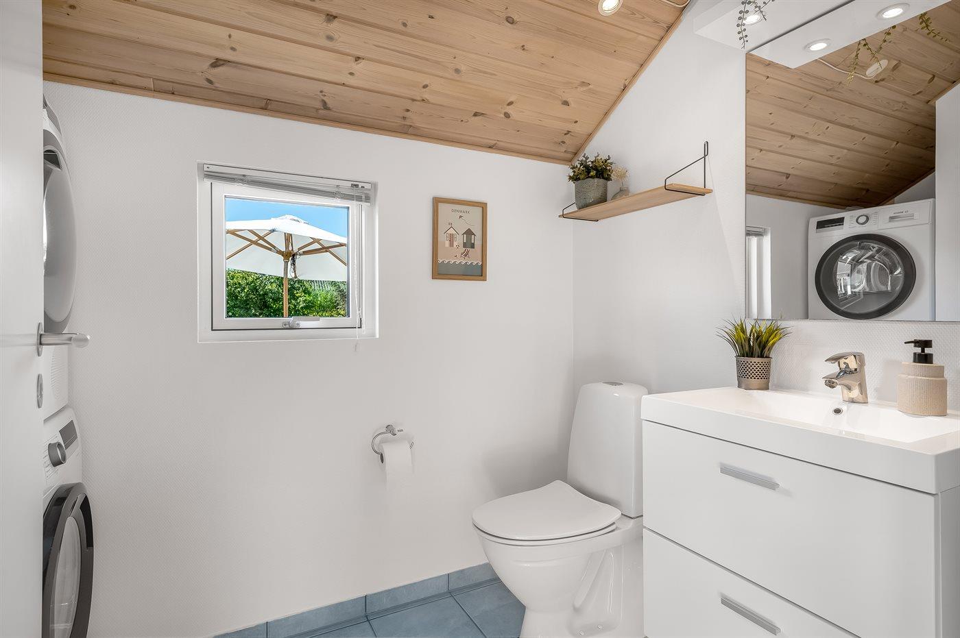 Der er 2 badeværelser med bruseniche og 2 toiletter. Der er gulvvarme på 2 badeværelser. I saunaen er der mulighed for afslapning.