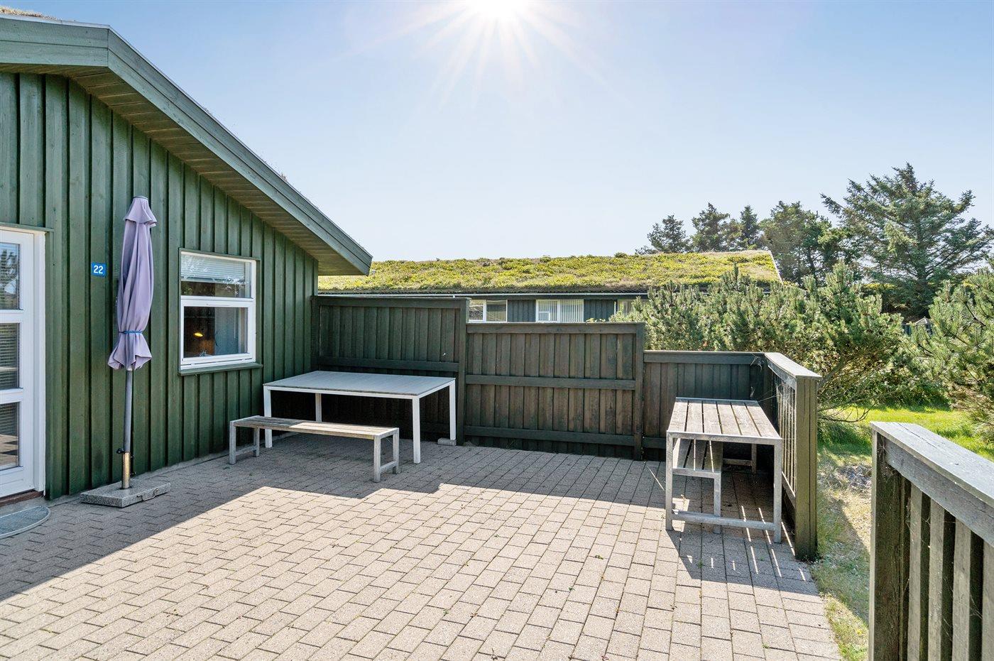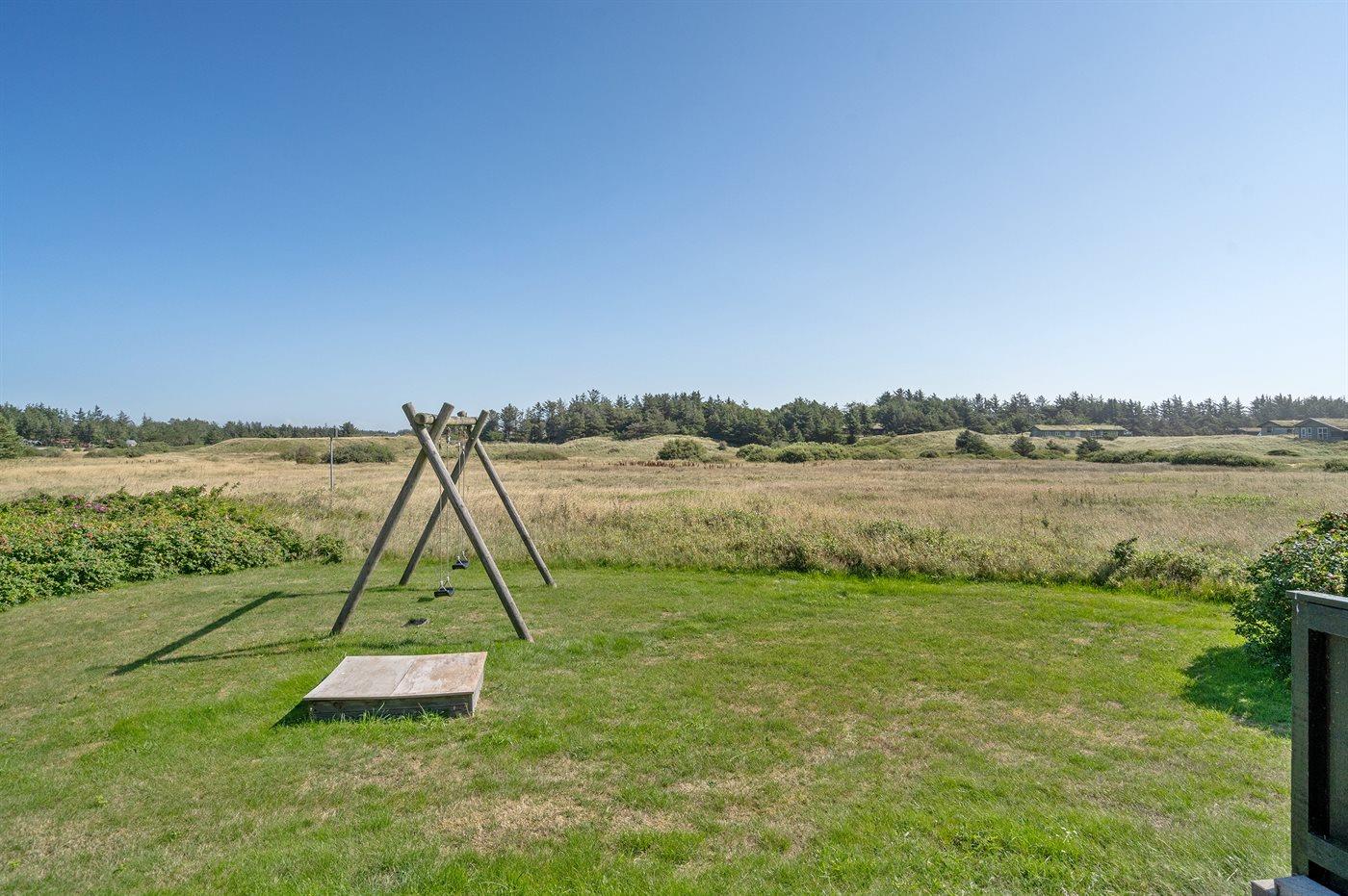 Ferieboligen er beliggende på en 1280 m² stor naturgrund. Der er 750 m til havet. Nærmeste forretning er beliggende i en afstand af 1600 m. Til ferieboligen hører 60 m² terrasseareal. Desuden er der 10 m² overdækket terrasse. Der er redskabsrum. Gynge. Sandkasse. Parkering ved ferieboligen.