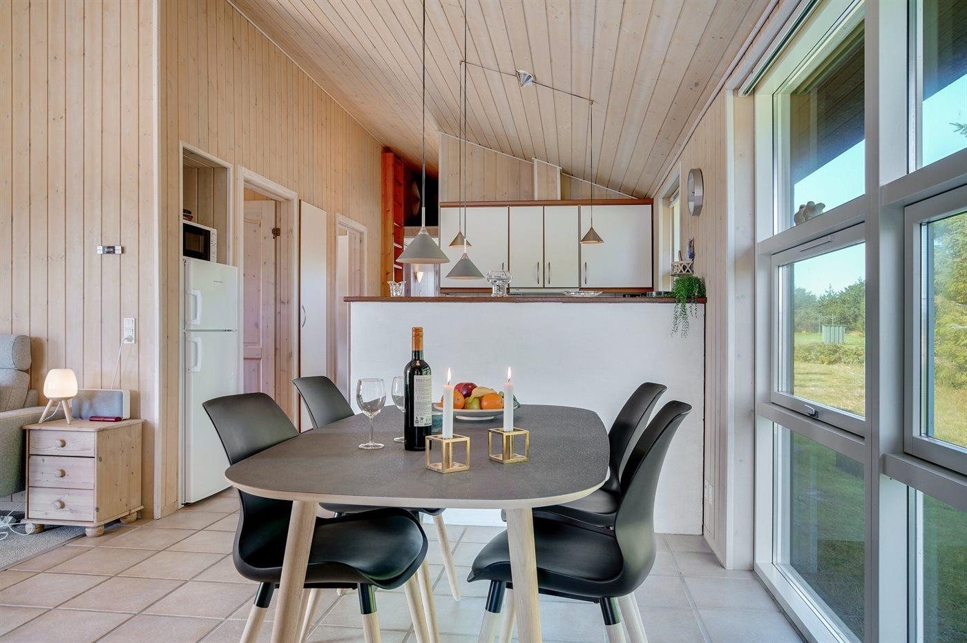 Sommerhuset egner sig til 6 personer samt 1 barn op til 3 år. Ferieboligen er på 92 m² og er bygget i 2002. Det er tilladt at medbringe 1 husdyr. Ferieboligen er udstyret med energibesparende varmepumpe. Der er gulvvarme i alle klinkegulve. Ferieboligen har vaskemaskine. Tørretumbler. Frysekapacitet på 30 liter. Der er desuden brændeovn. Til de små er der 1 stk. barnestol.