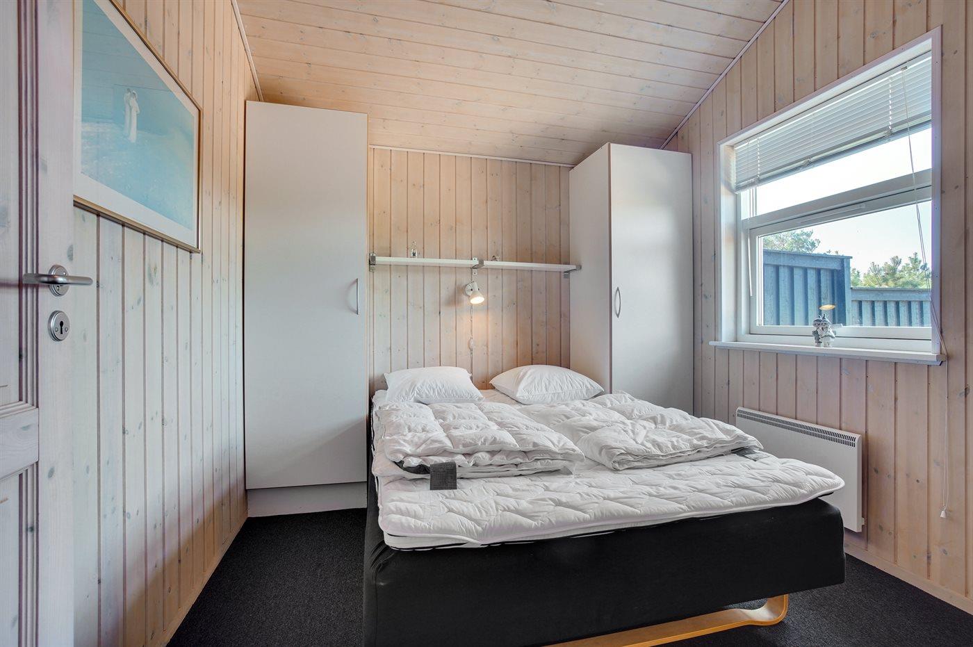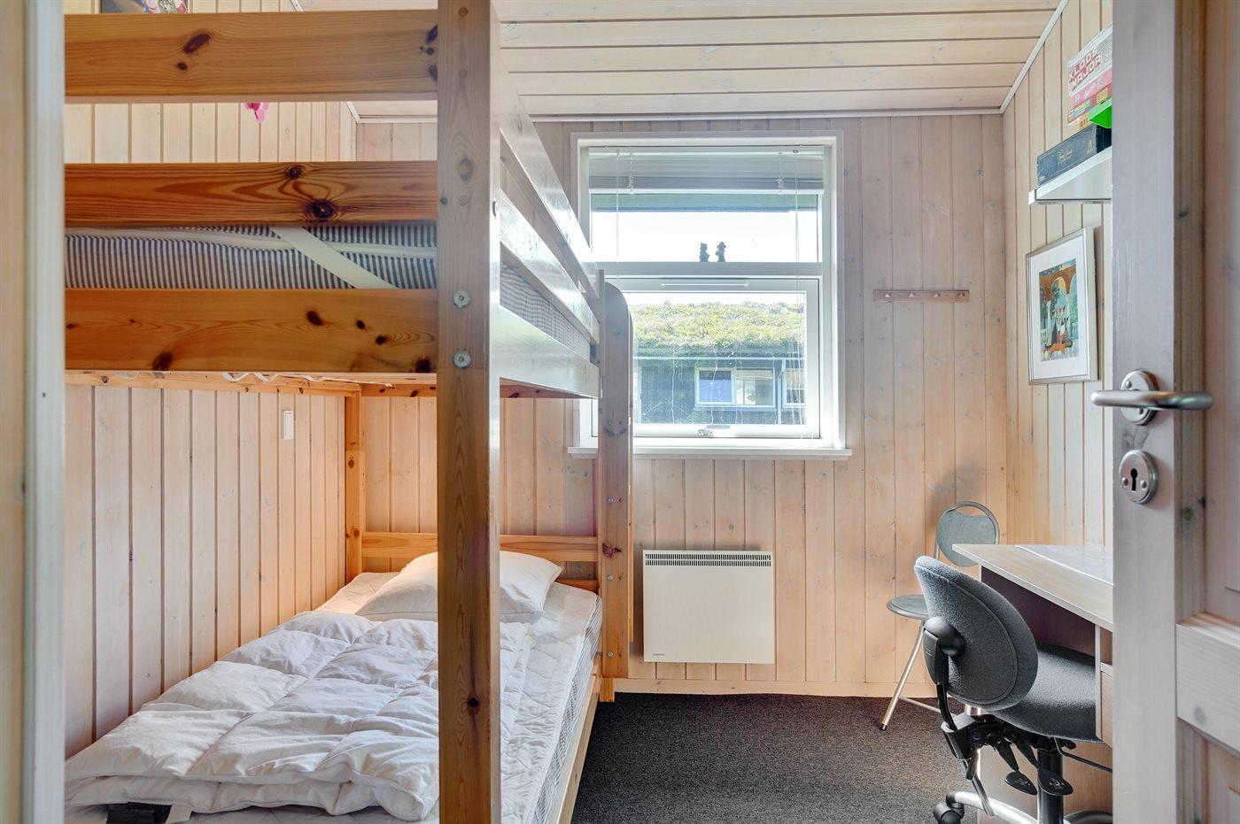 Der er i alt 4 soveværelser. Sovepladserne fordeler sig på: 4 sovepladser i dobbeltsenge. 4 sovepladser i køjesenge. Derudover er der 1 stk. barneseng.