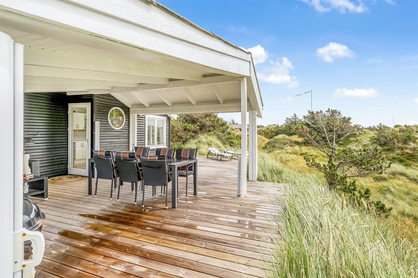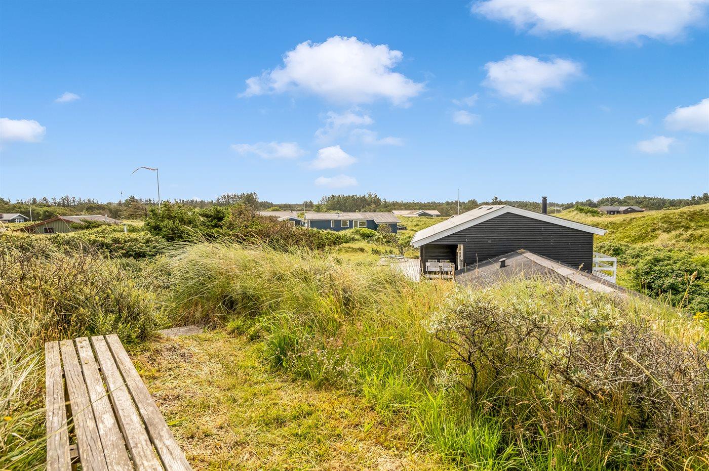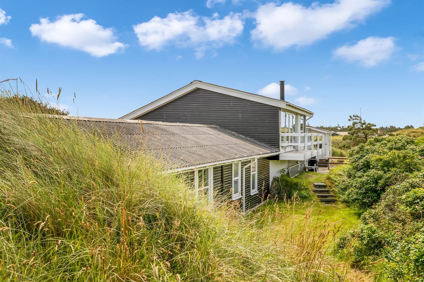 Et velbeliggende sommerhus, hvorfra udsigten over Vesterhavet kan nydes fra det højeste punkt af den dejligt kuperede naturgrund. Huset ligger i ferieområdet Grønhøj kun en kort gåtur fra den dejlige badestrand og ikke langt fra forlystelsesparken Fårup sommerland.
