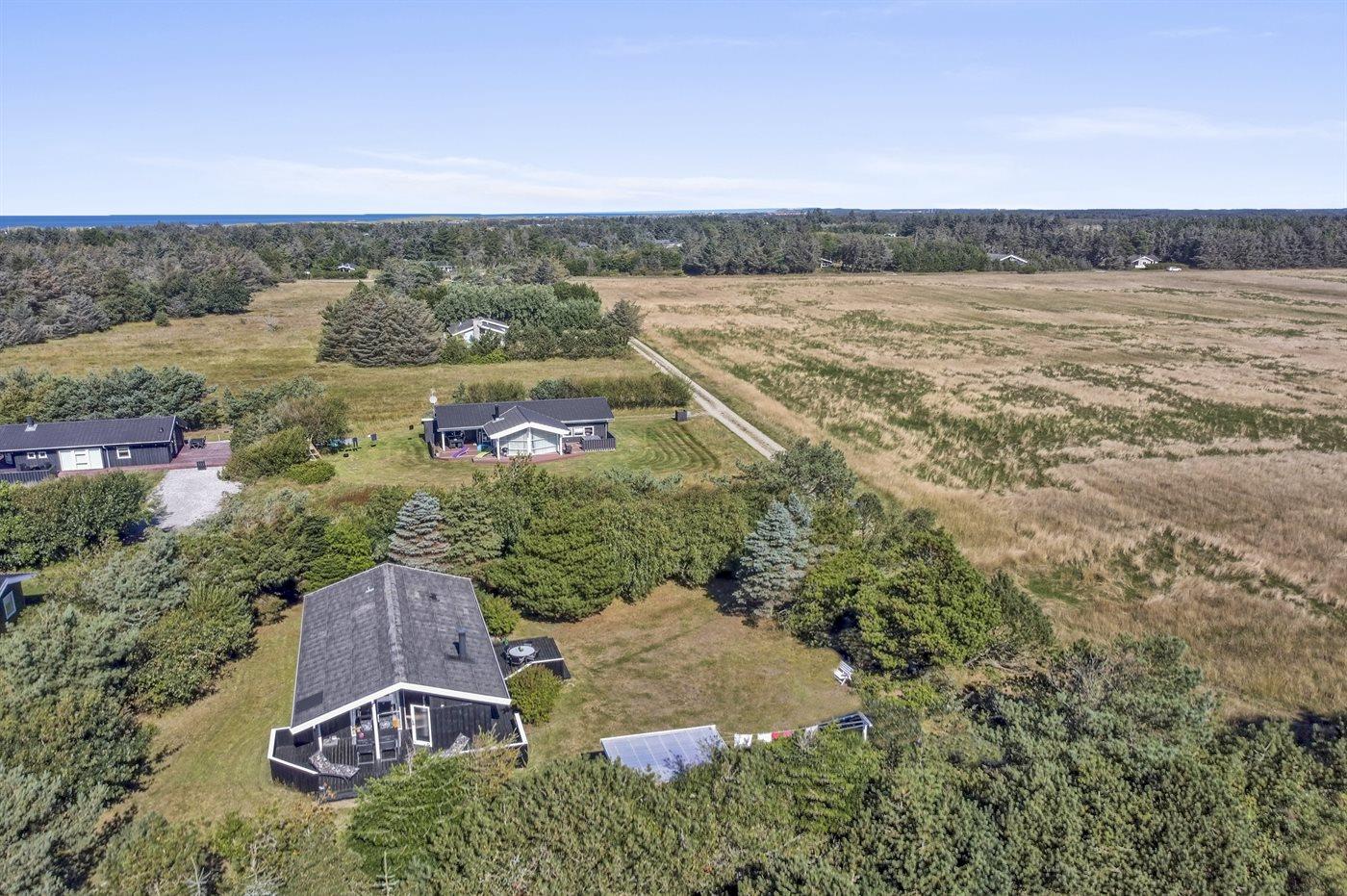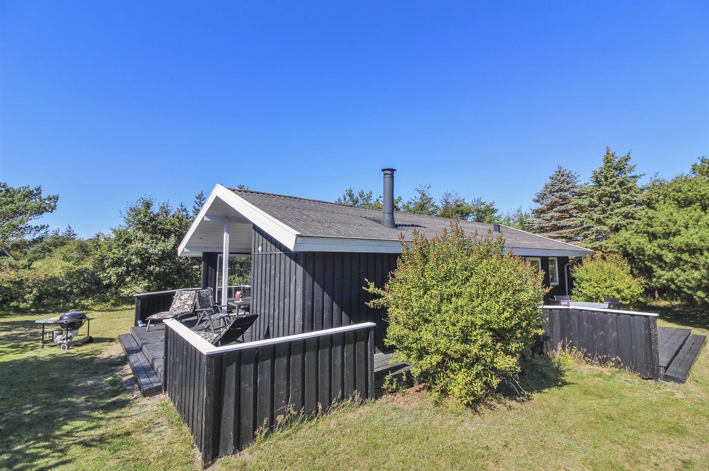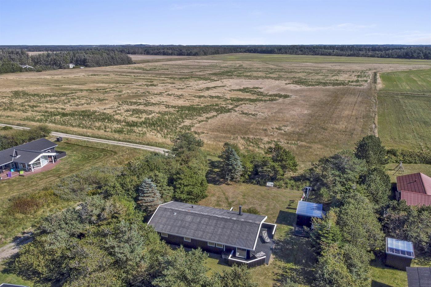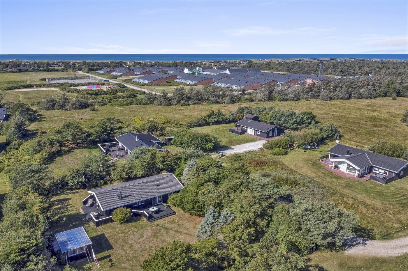 Ferieboligen er beliggende på en 1232 m² stor naturgrund. Der er 900 m til havet. Nærmeste forretning er beliggende i en afstand af 500 m. Til ferieboligen hører åbent terrasseareal. Desuden er der overdækket terrasse. Der er redskabsrum. Grill til rådighed. Parkering ved ferieboligen.