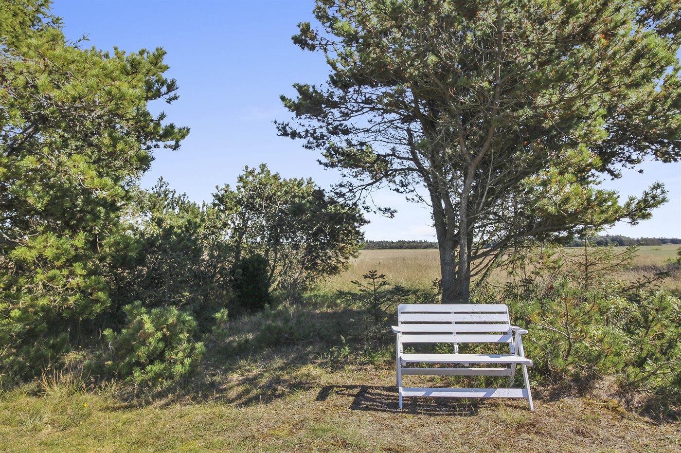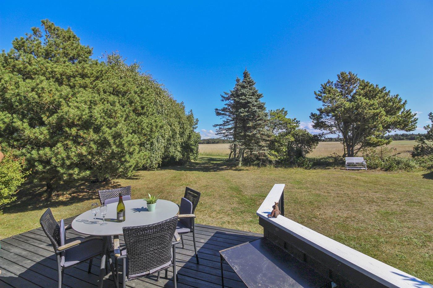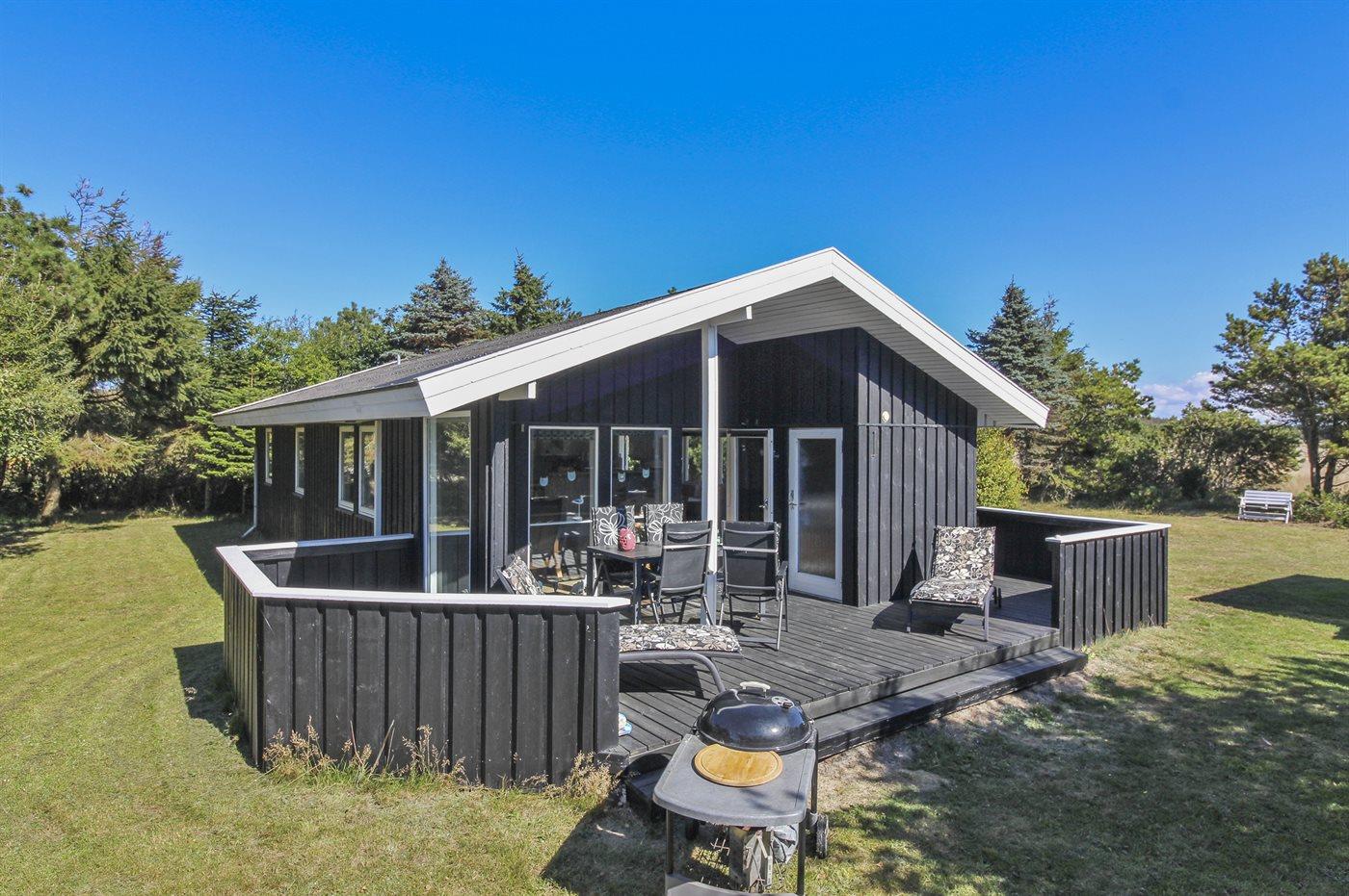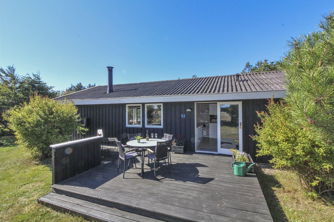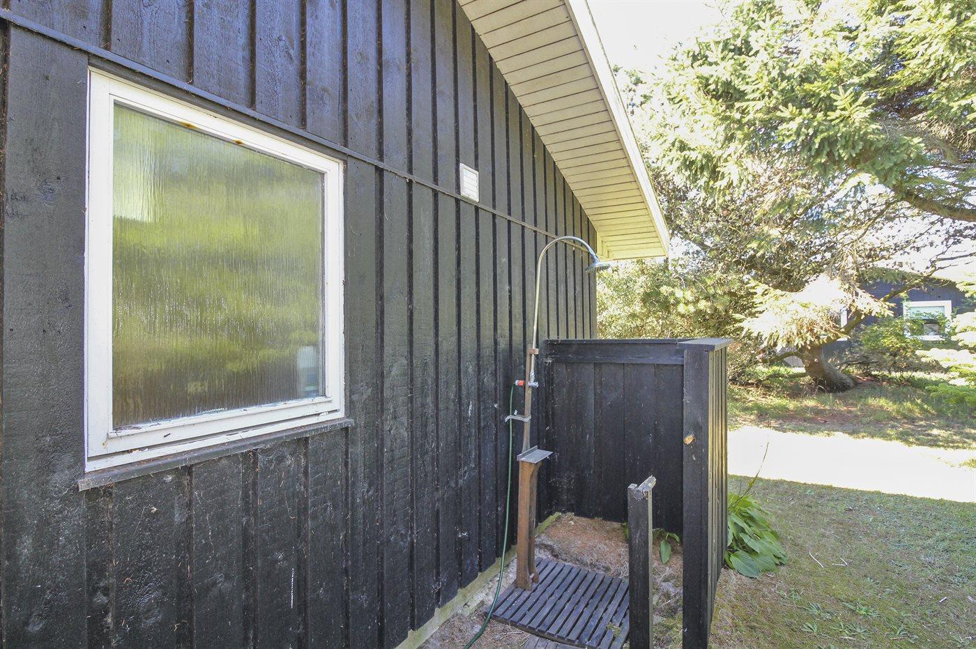 Ferieboligen er beliggende på en 1232 m² stor naturgrund. Der er 900 m til havet. Nærmeste forretning er beliggende i en afstand af 500 m. Til ferieboligen hører åbent terrasseareal. Desuden er der overdækket terrasse. Der er redskabsrum. Grill til rådighed. Parkering ved ferieboligen.