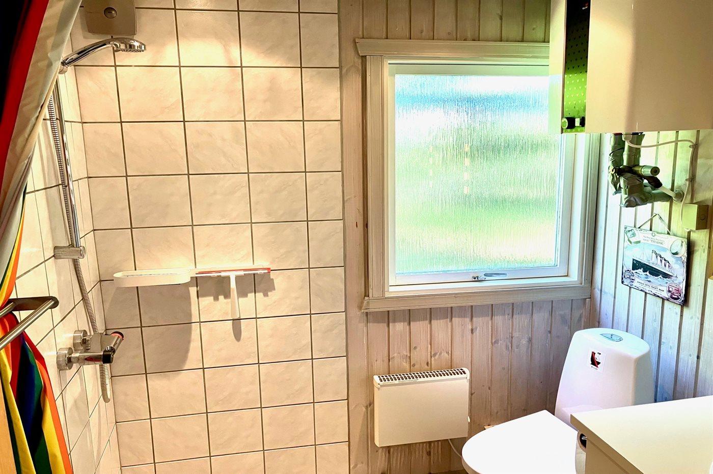 Der er 1 badeværelse med bruseniche og 1 toilet.