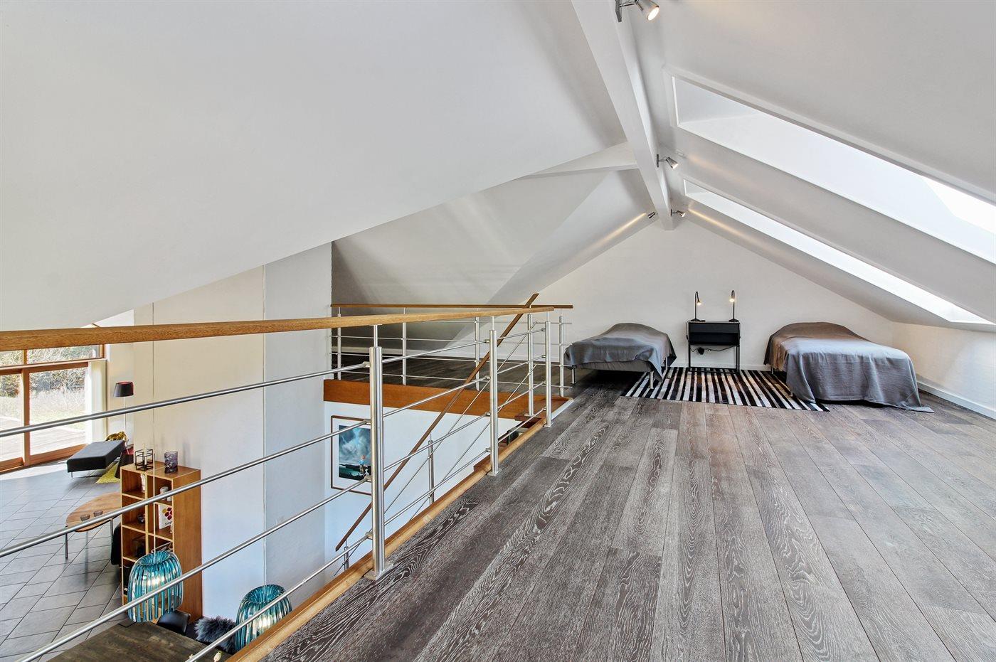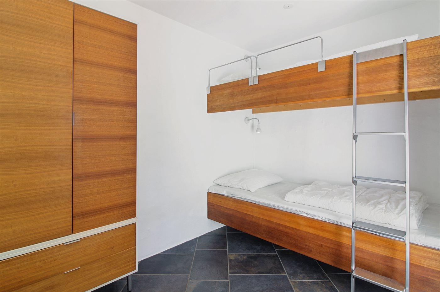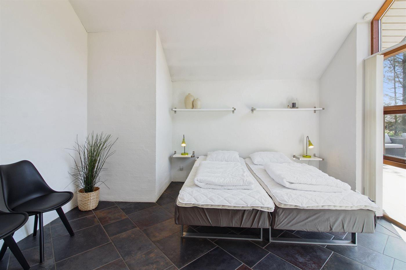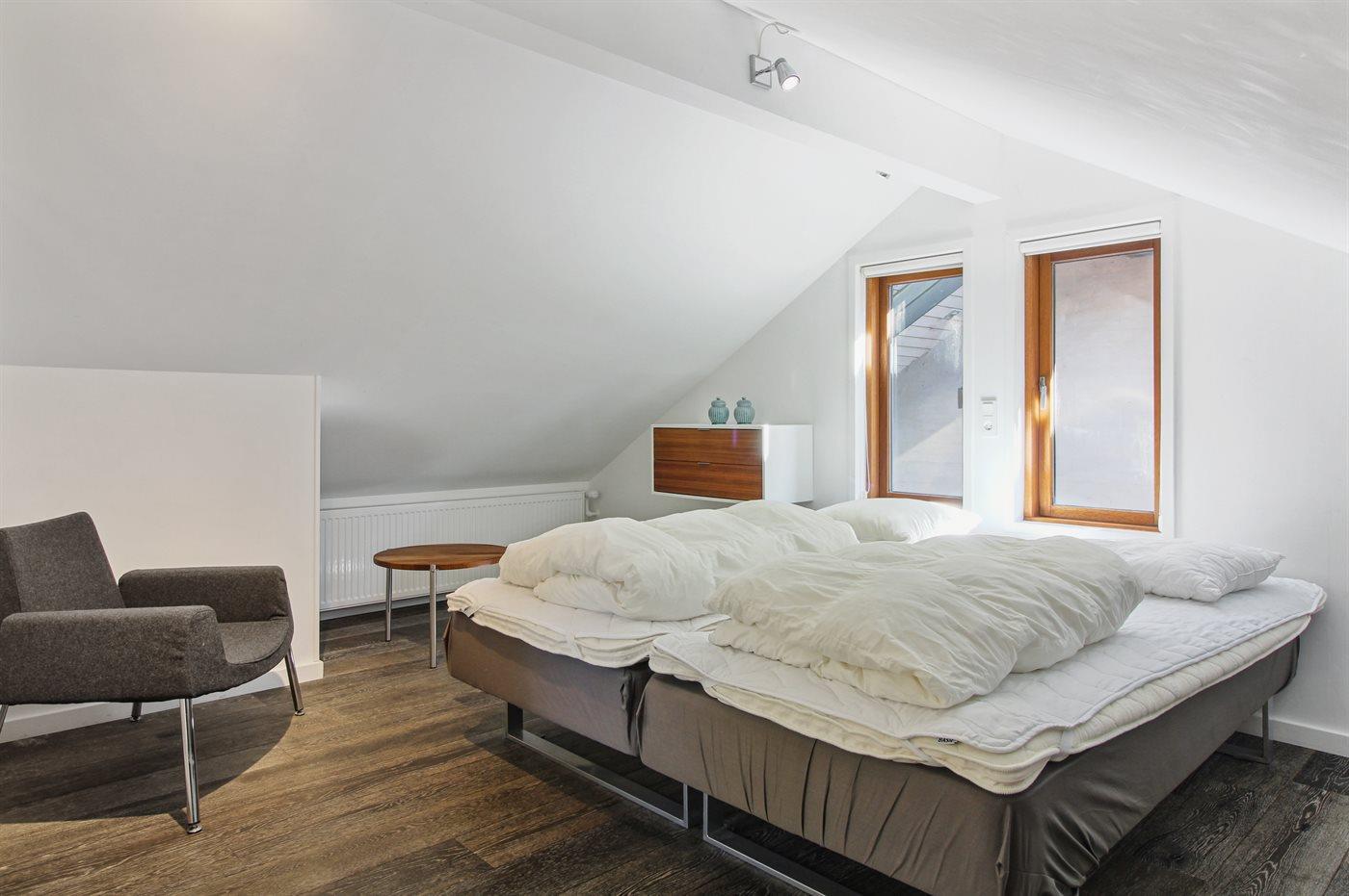 Der er i alt 4 soveværelser. Sovepladserne fordeler sig på: 8 sovepladser i dobbeltsenge. 2 sovepladser i enkeltsenge. 2 sovepladser i køjeseng. 2 af disse sovepladser befinder sig i et anneks og 2 af dem befinder sig på hemsen.