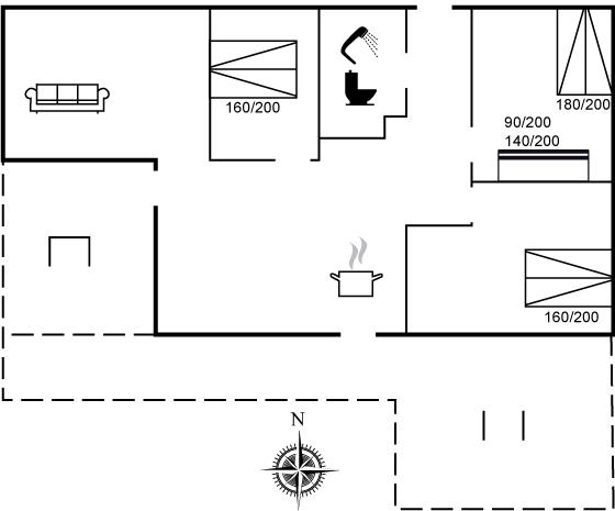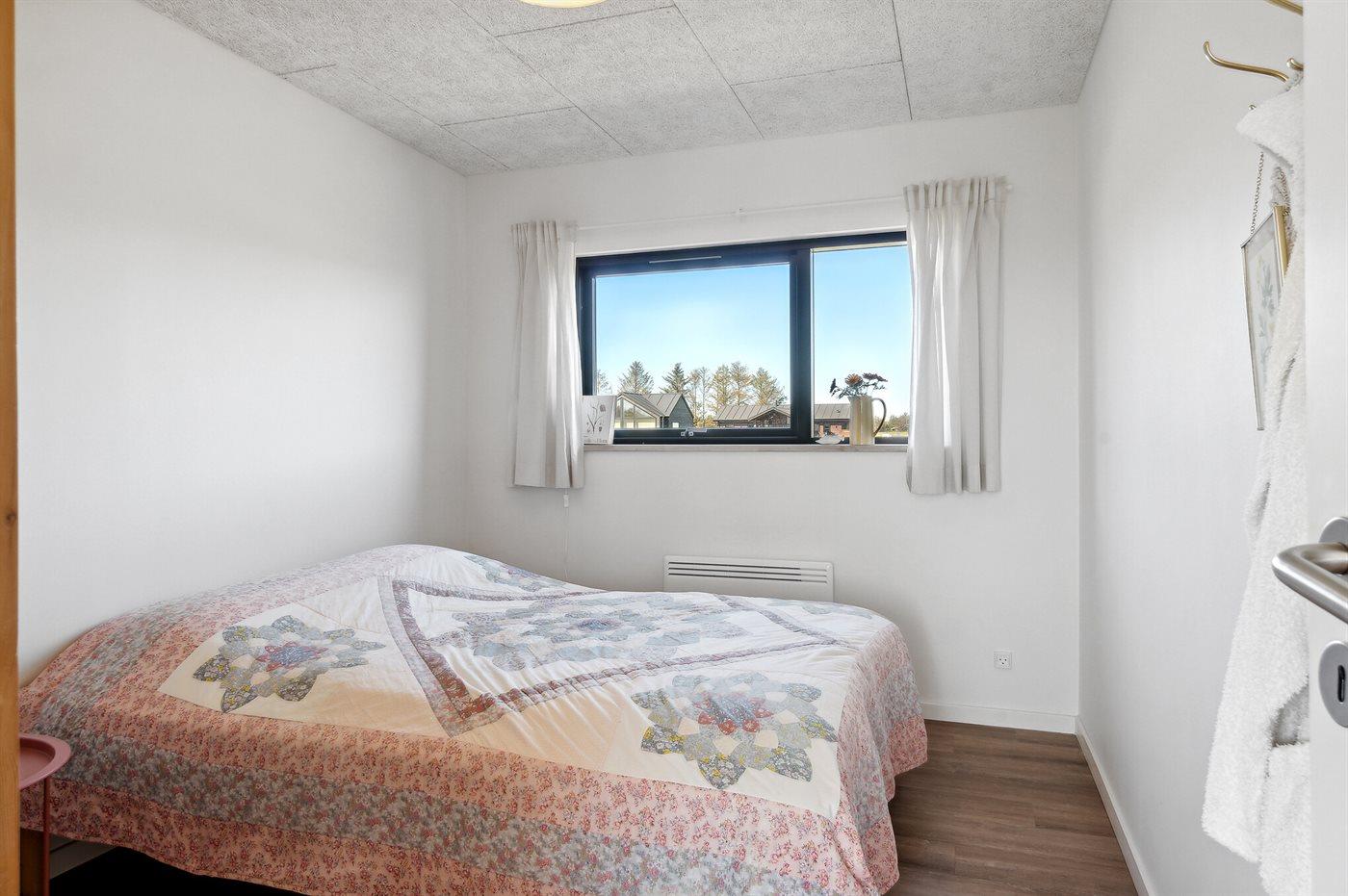Der er i alt 3 soveværelser. Sovepladserne fordeler sig på: 6 sovepladser i dobbeltsenge. 2 sovepladser i køjeseng. Derudover er der 1 stk. barneseng.