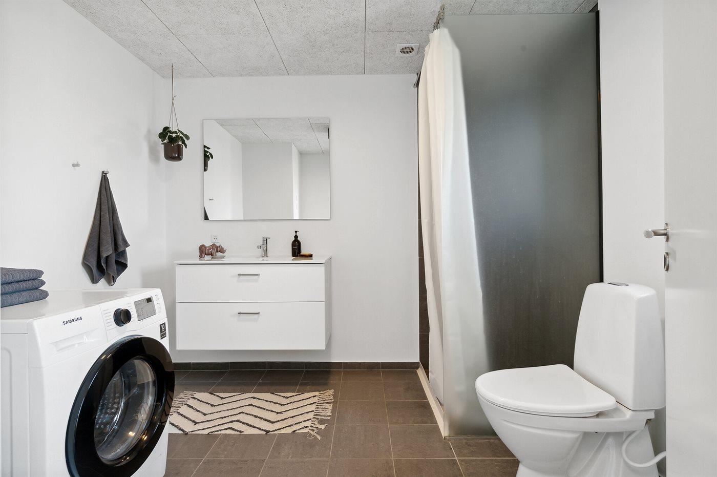 Der er 1 badeværelse med bruseniche og 1 toilet.. Der er gulvvarme på 1 badeværelse.