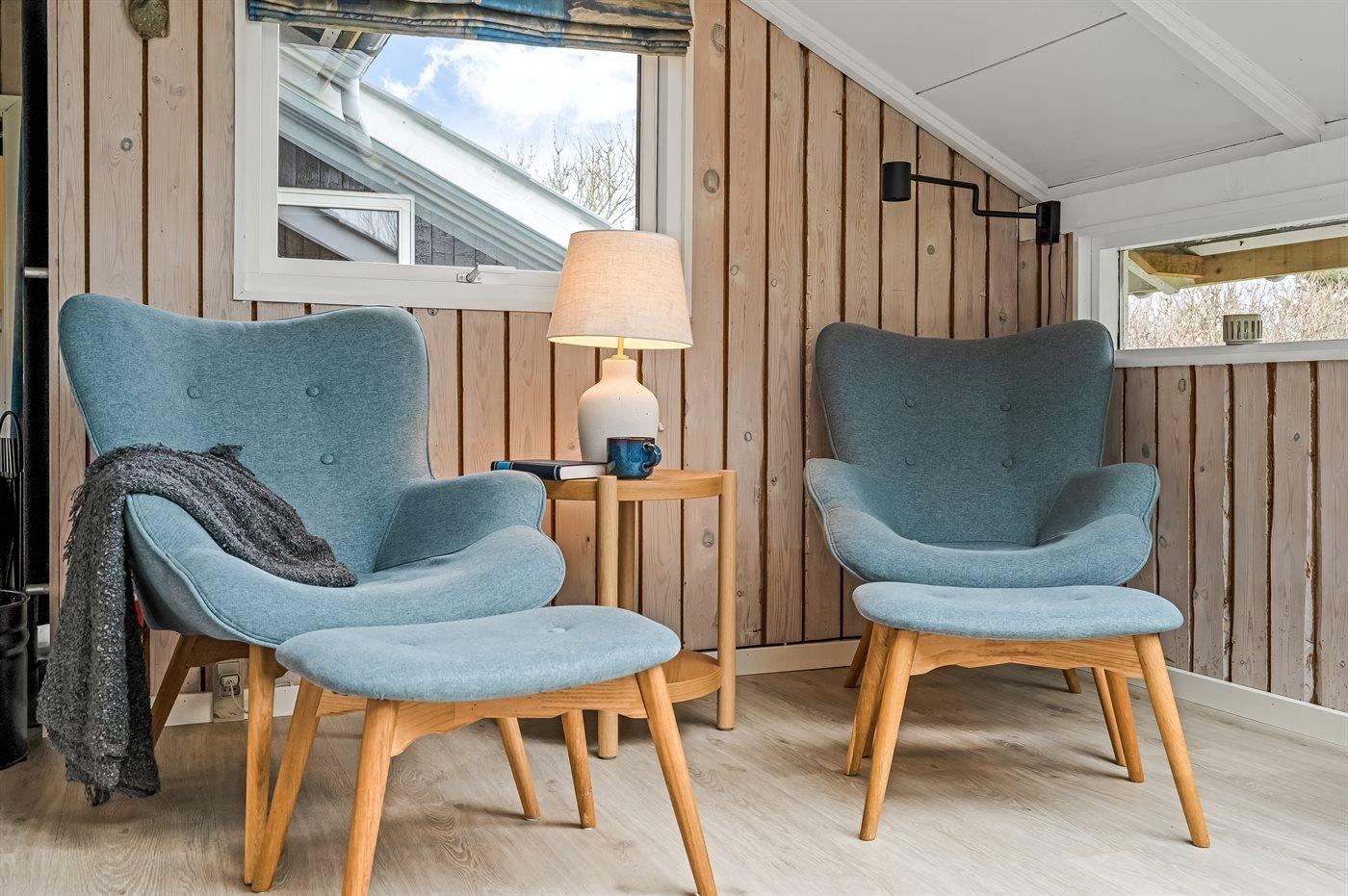 Udenfor sommerhuset er der god plads til leg og udeliv i solen på den store græsplæne og terrasserne rundt om huset. Får du lyst til en svømmetur eller en gåtur i solnedgangen, er der kort afstand til Vesterhavet.
