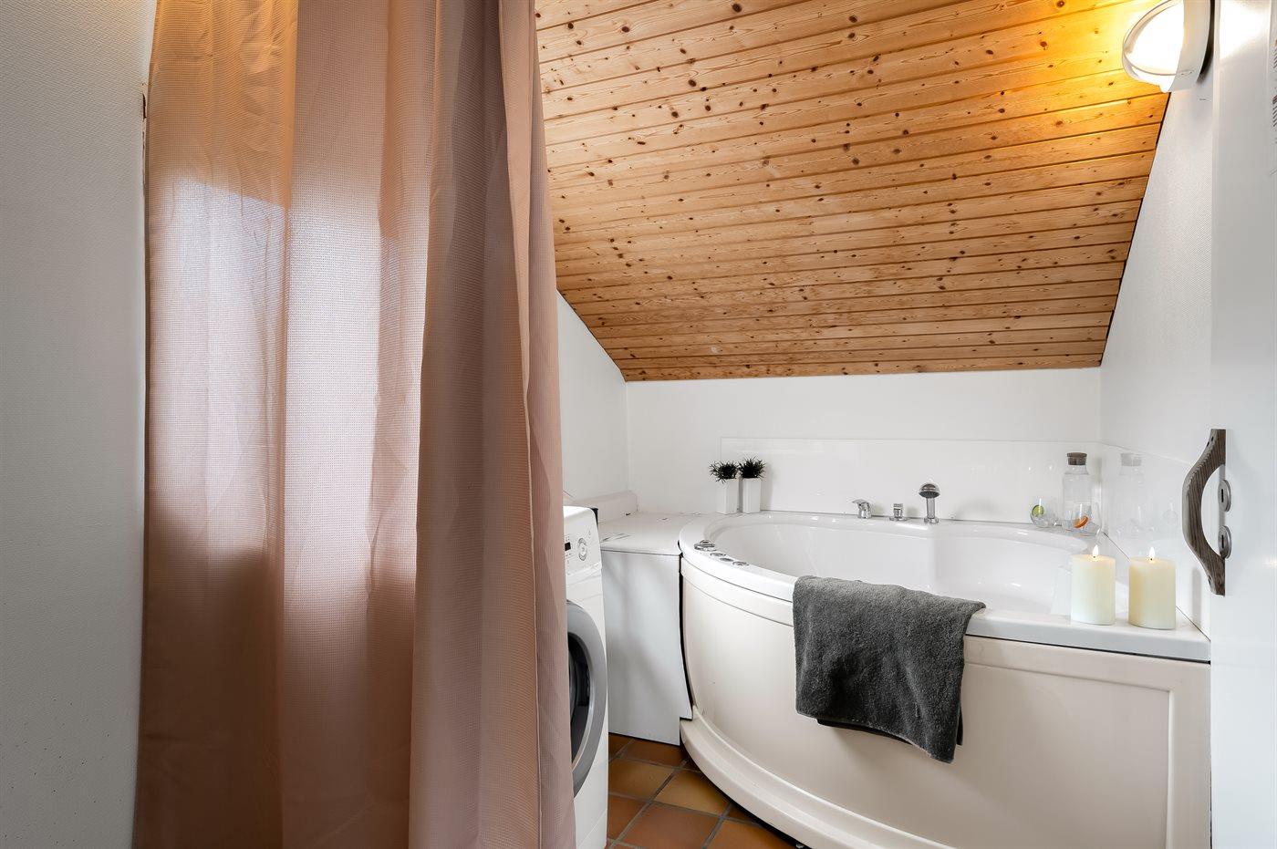 Der er 2 badeværelser med bruser og 1 toilet.. Der er gulvvarme på 2 badeværelser. I saunaen er der mulighed for afslapning.