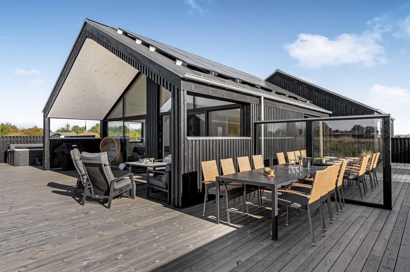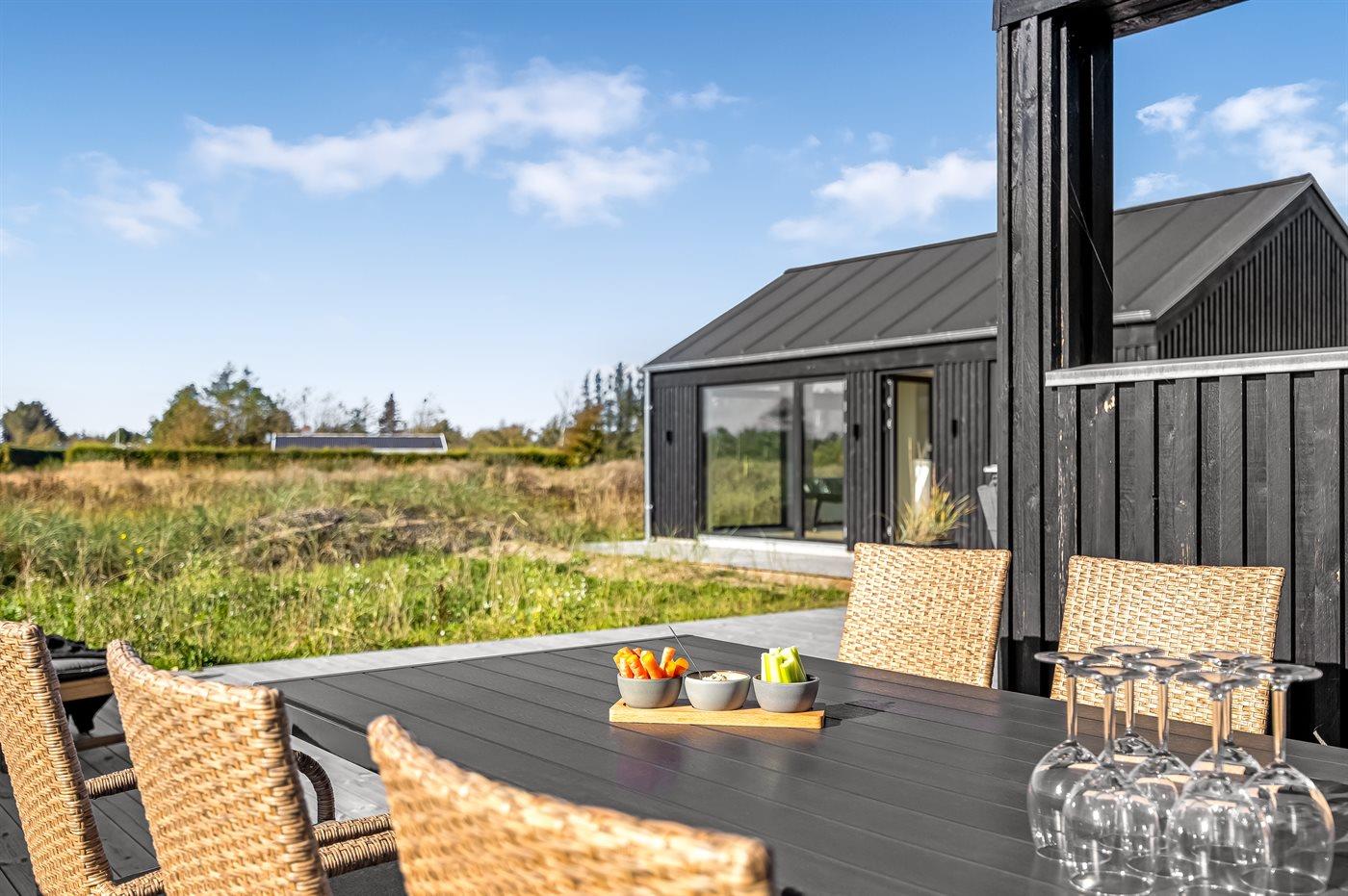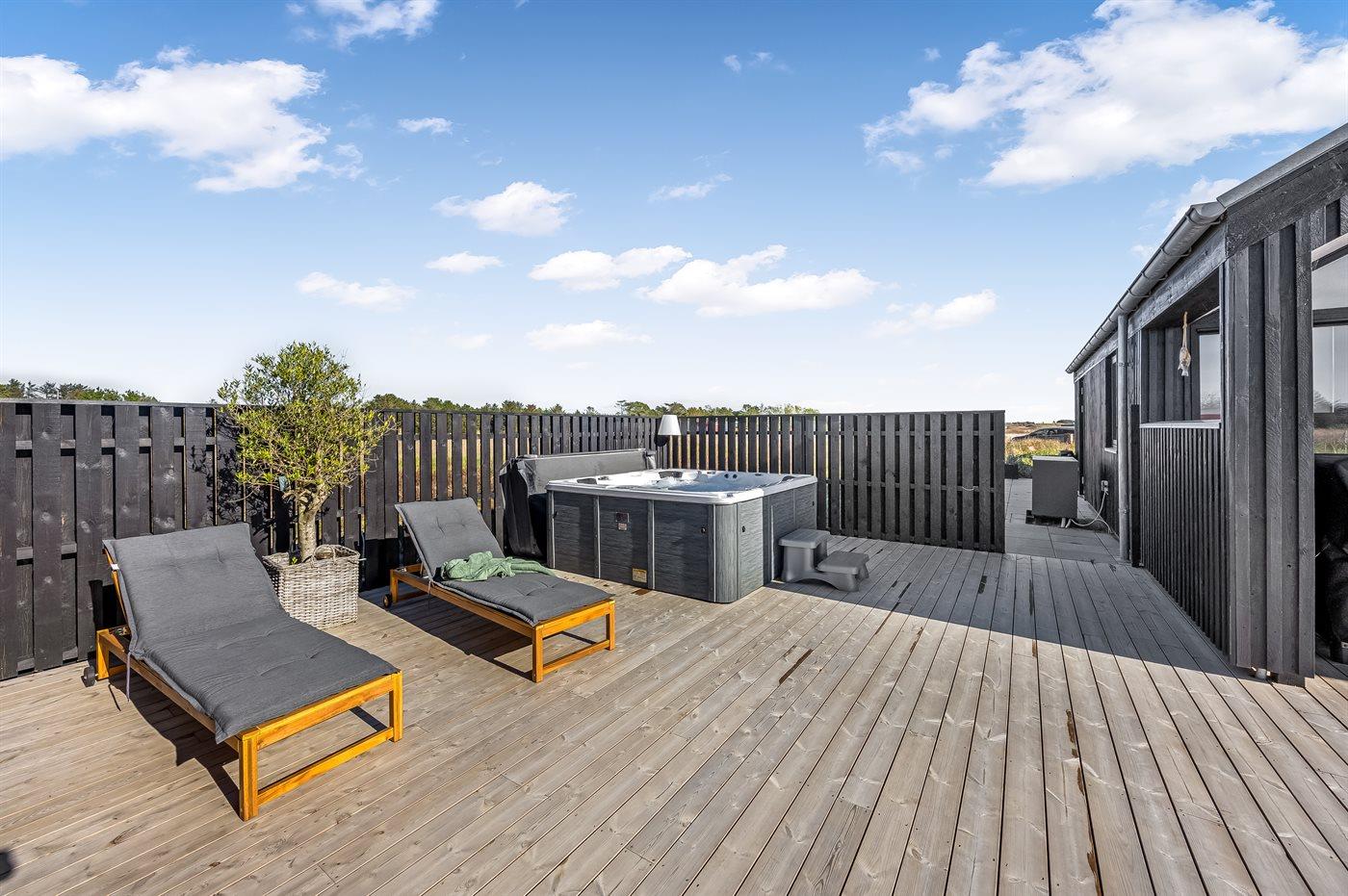 Ferieboligen er beliggende på en 2075 m² stor naturgrund. Der er 1200 m til havet. Nærmeste forretning er beliggende i en afstand af 600 m. Til ferieboligen hører åbent terrasseareal. Desuden er der overdækket terrasse. Udendørs bruser. Grill til rådighed. Der er installeret stik til opladning af elbil. Type 2 stik. Med 11 kW ladeeffekt. Parkering ved ferieboligen.