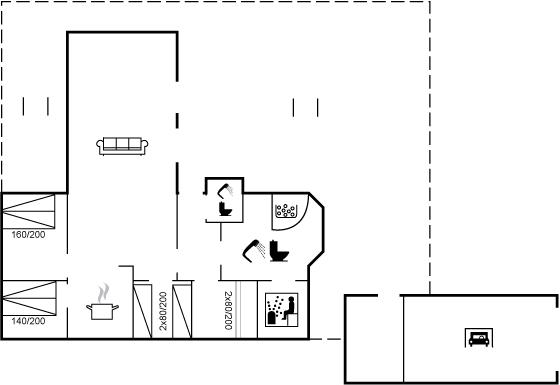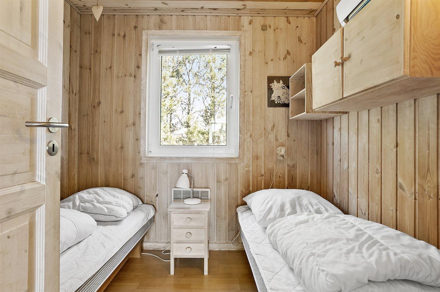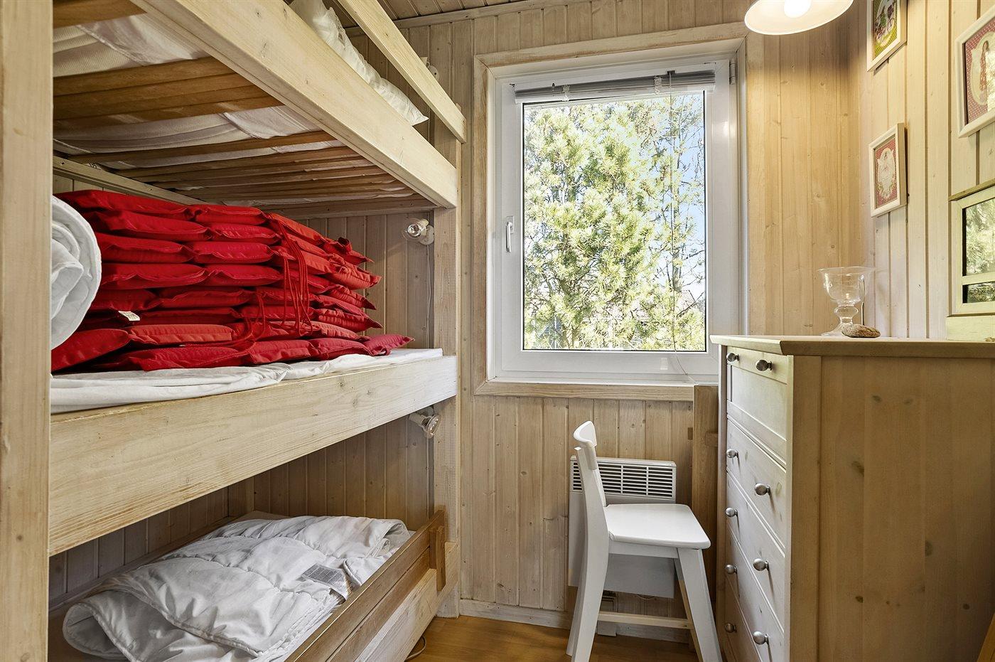 Der er i alt 4 soveværelser. Sovepladserne fordeler sig på: 4 sovepladser i dobbeltsenge. 2 sovepladser i enkeltsenge. 2 sovepladser i køjeseng.