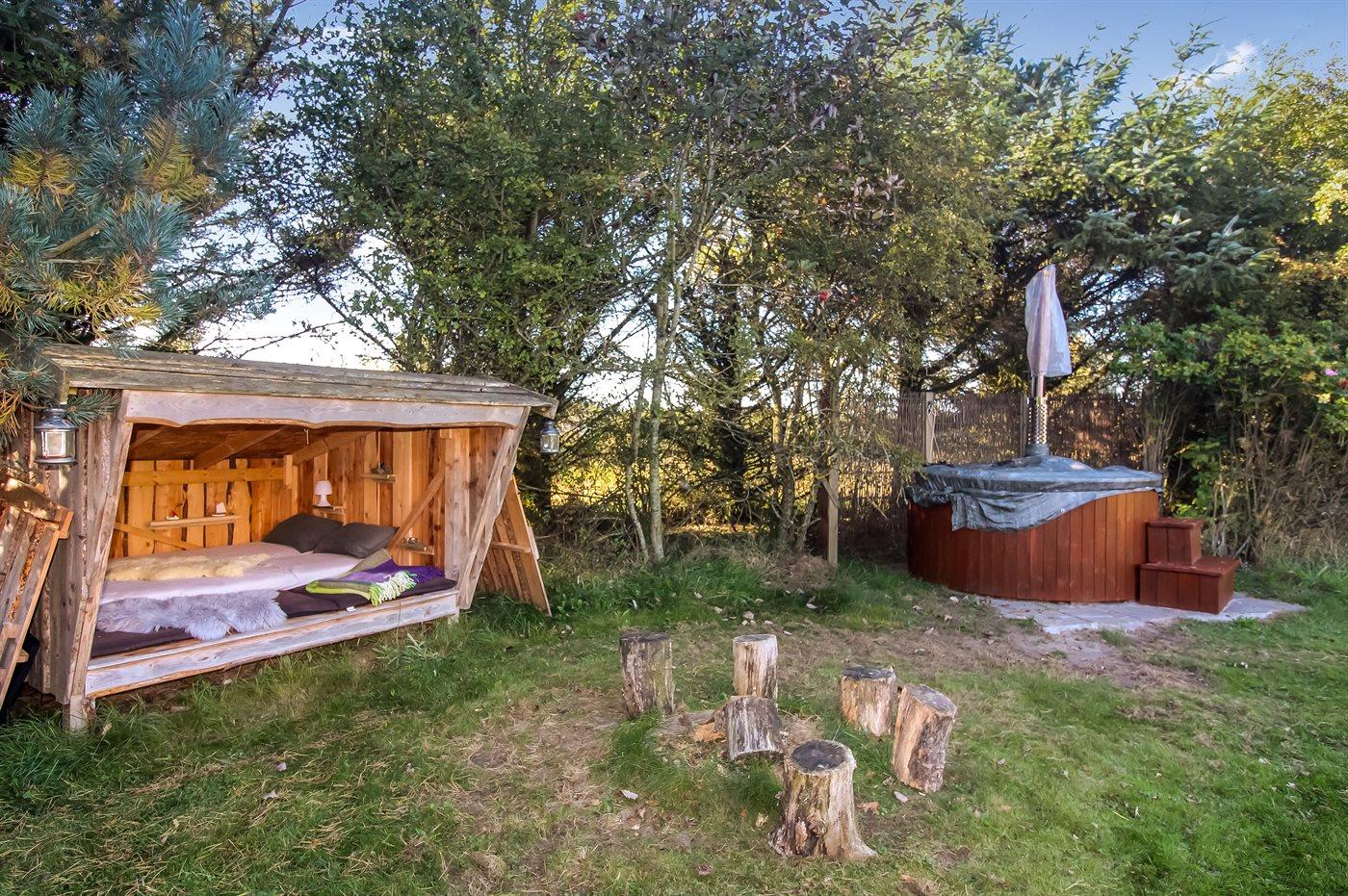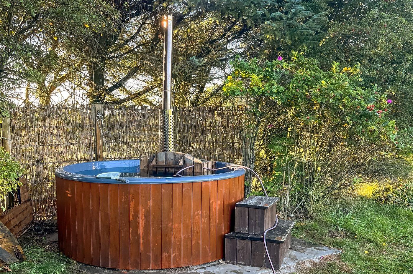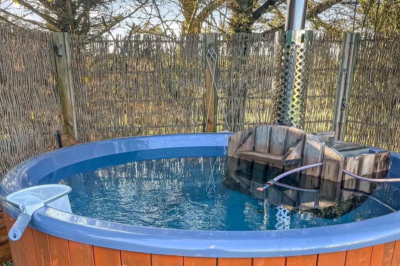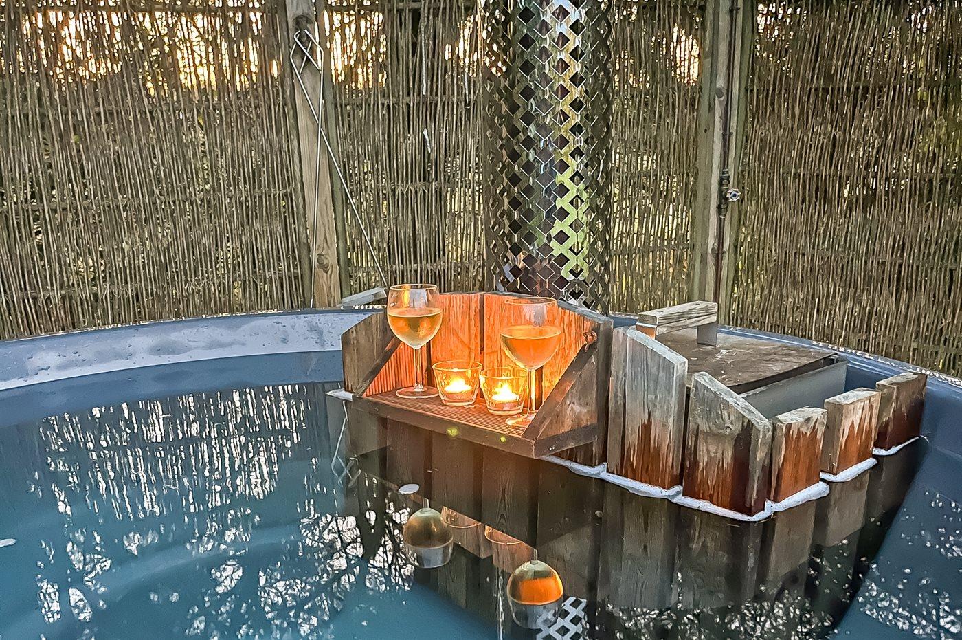 Der er mulighed for afslapning i det udendørs vildmarkskar til 6 personer.