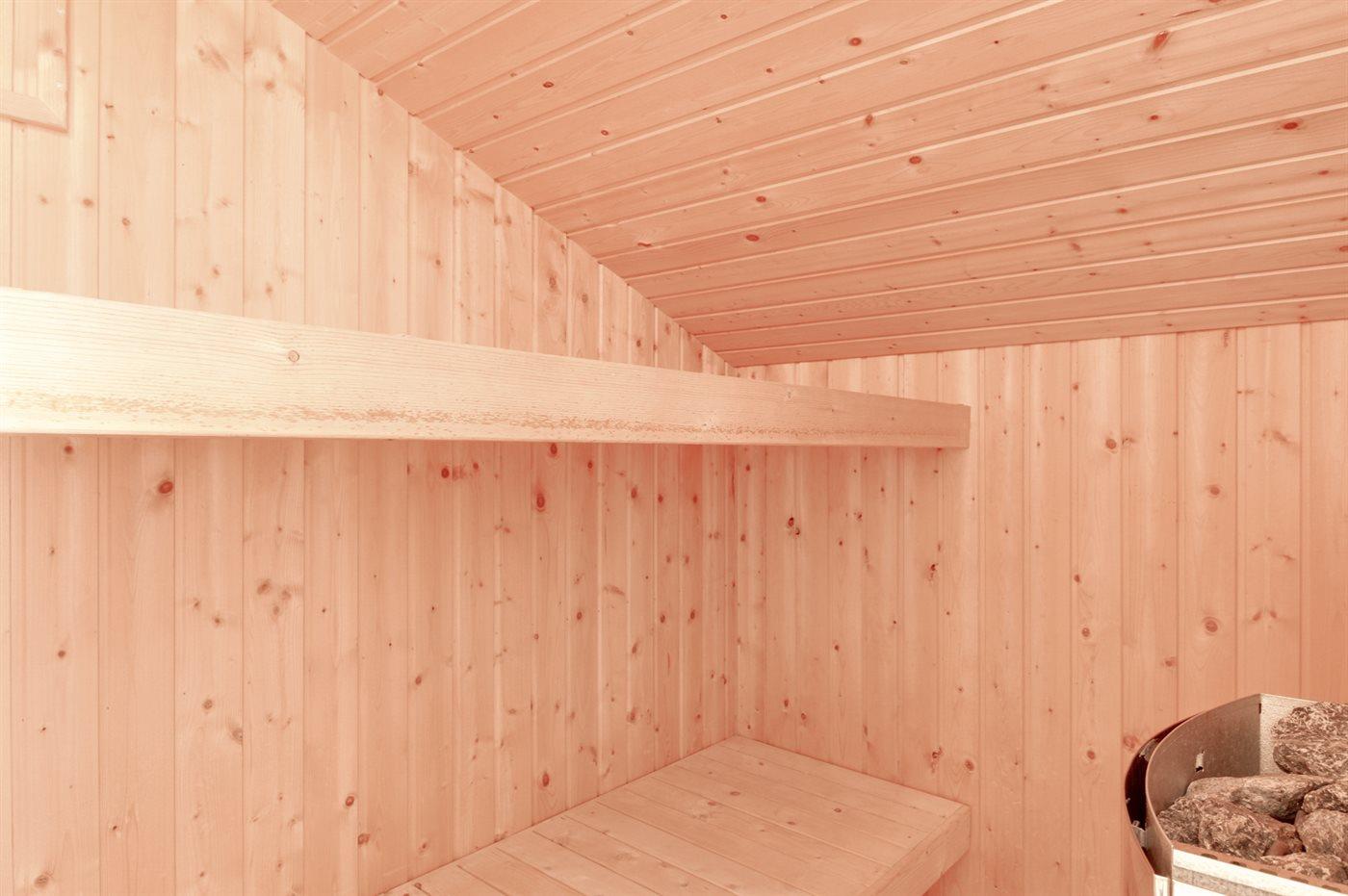 Der er 2 badeværelser med bruseniche og 2 toiletter. Der er gulvvarme på 2 badeværelser. I saunaen er der mulighed for afslapning.