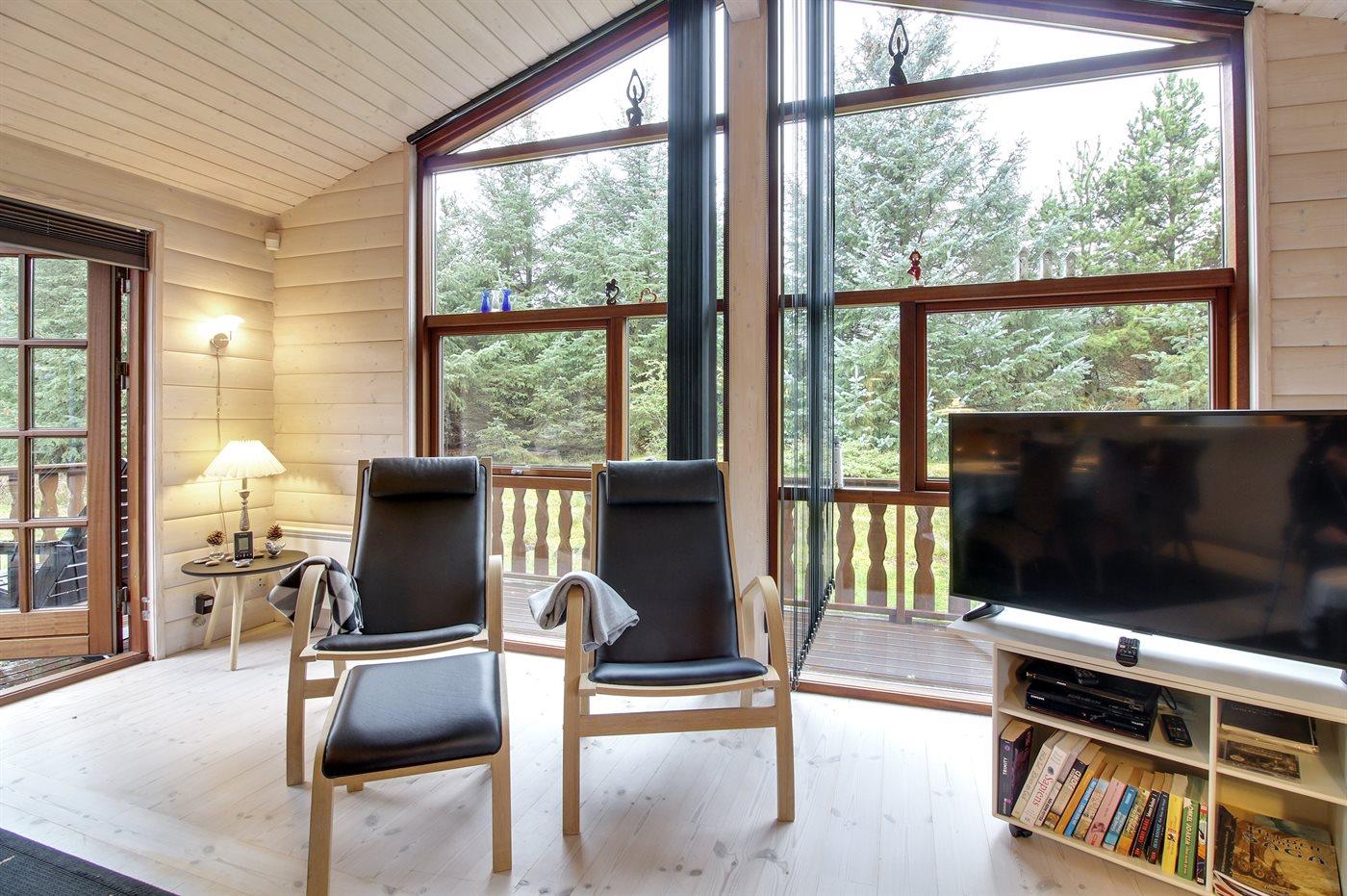 Pragtfuldt sommerhus i naturskønt område nær havet med delvist lukket solgård og moderne faciliteter.