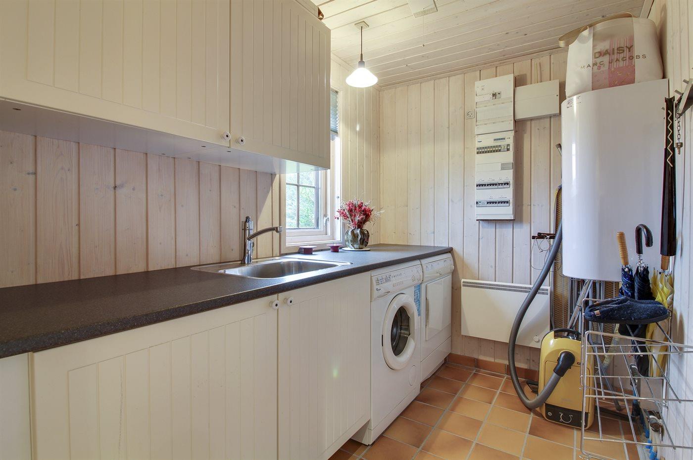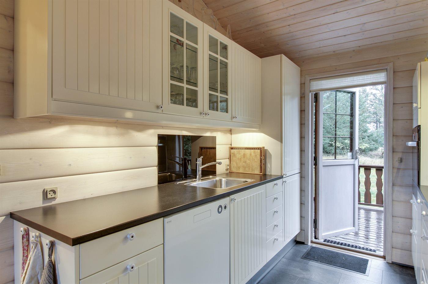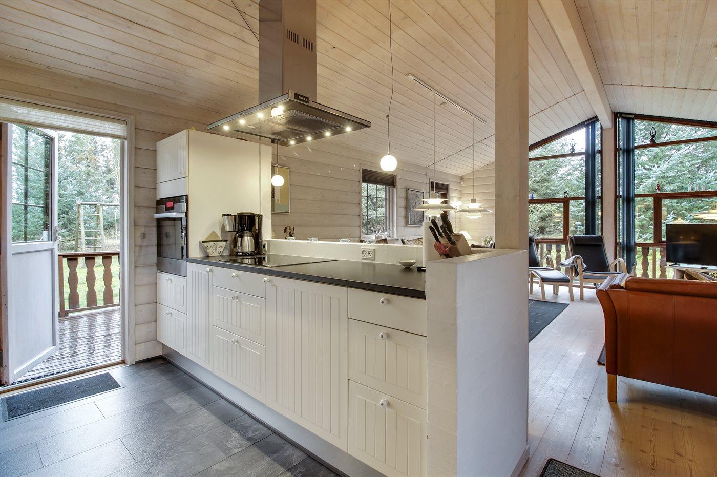 Køkkenet er udstyret med 1 køleskab. Der er 4 induktionskogeplader, varmluftovn, mikrobølgeovn samt opvaskemaskine.