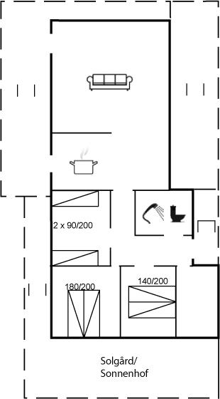 Der er i alt 3 soveværelser. Sovepladserne fordeler sig på: 4 sovepladser i dobbeltsenge. 2 sovepladser i enkeltsenge.