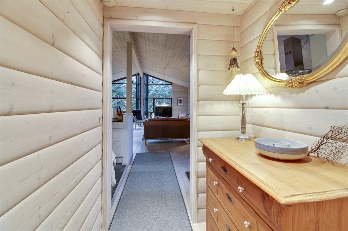Pragtfuldt sommerhus beliggende i et flot naturområde med gode stiforbindelser til havet. Mellem huset og garagen er der en dejlig, delvist lukket solgård.