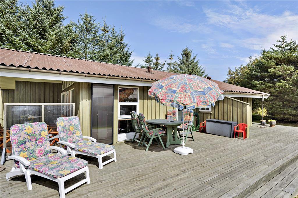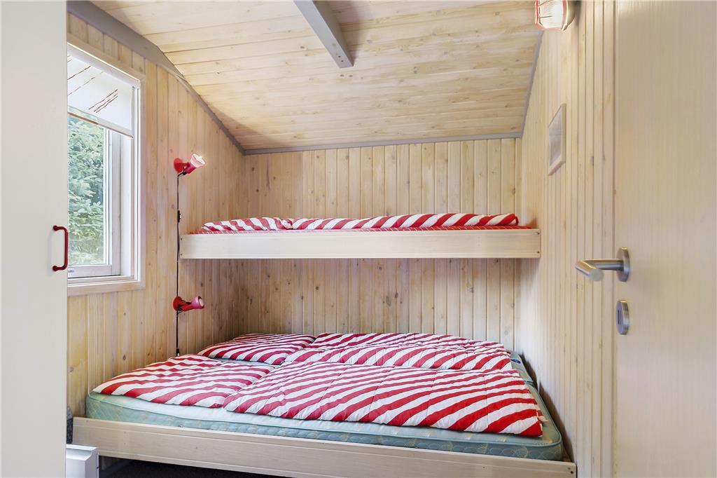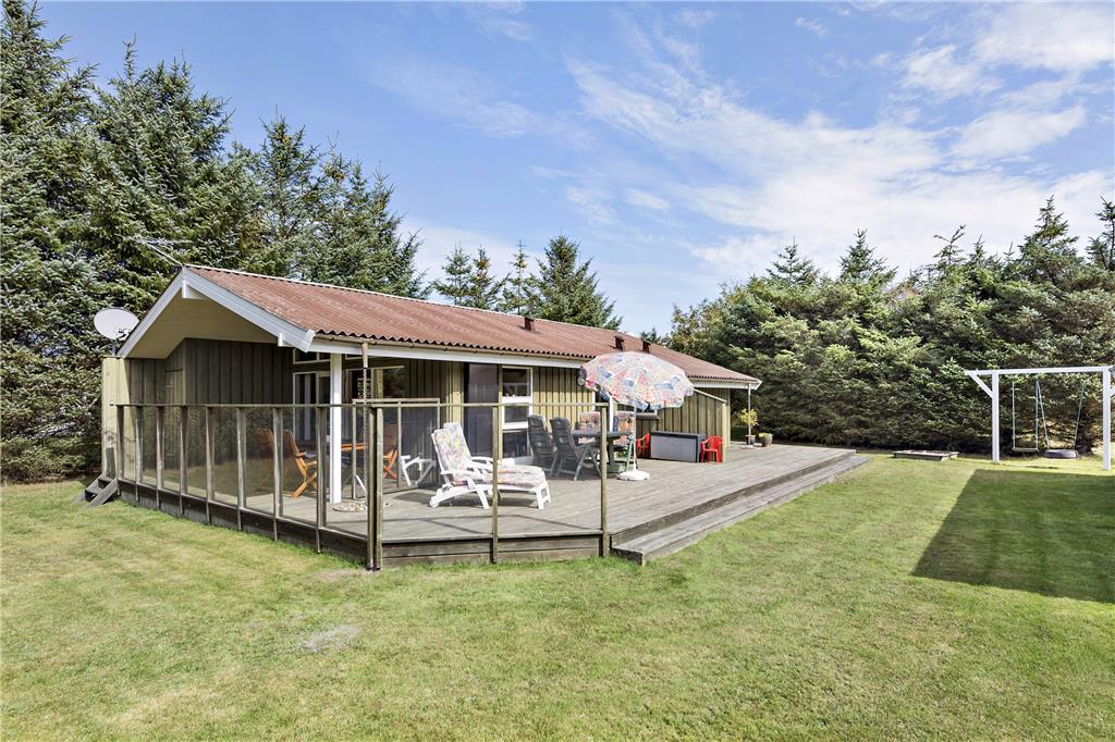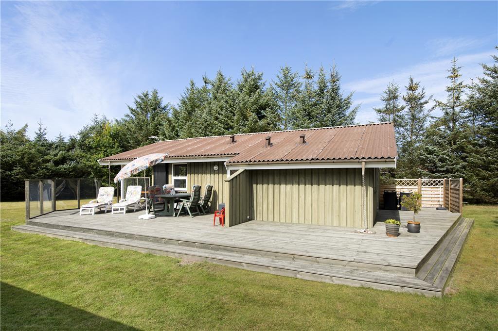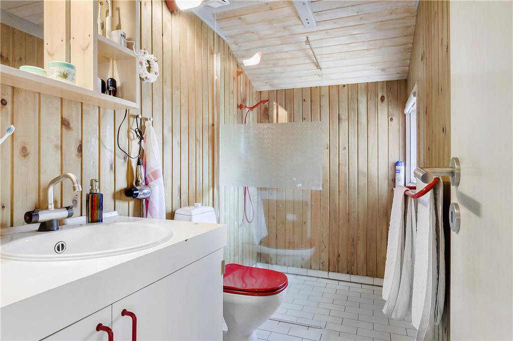 Når du træder indenfor i dette sommerhus, mødes du af en lys og indbydende atmosfære. Sommerhuset er godt indrettet med en rummelig stue, hvor du kan nyde afslapning. Herfra er der direkte adgang til den dejlige terrasse, så du kan nemt rykke udendørs og nyde solen. Køkkenet er veludstyret og indbyder til hyggelige madlavningsstunder, og der er rig mulighed for at samles om måltiderne i den åbne stue, hvor du kan slappe af med familien og vennerne. Sommerhuset har tre gode værelser, der sikrer, at alle har plads til at slappe af efter en lang dag med oplevelser. Badeværelset er funktionelt og indbydende, og med dets gode faciliteter kan du starte og afslutte dagen på bedste vis.