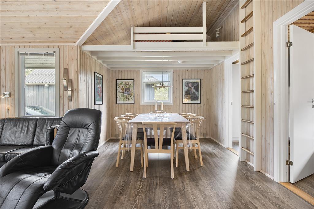 Sommerhuset er lyst og indbydende med en varm atmosfære, der straks får dig til at føle dig hjemme. Planløsningen er veludnyttet og rummer blandt andet tre gode soverum samt en hems, hvor børnene kan skabe deres eget hyggelige fristed. Det veludstyrede køkken har både opvaskemaskine, mikroovn og separat fryser, så det er nemt at tilberede lækre måltider med lokale råvarer. Fra køkkenet er der åben forbindelse til opholdsrummet, hvor spisepladsen og sofagruppen indbyder til samvær. Brændeovnen skaber ekstra hygge på kølige aftener, og badeværelset med vaskemaskine gør det praktisk at holde ferie, selv når hele familien er samlet. Annekset giver ekstra plads til gæster eller teenagere, der søger lidt privatliv, men vær opmærksom på, at det ikke er udstyret med vand og el.