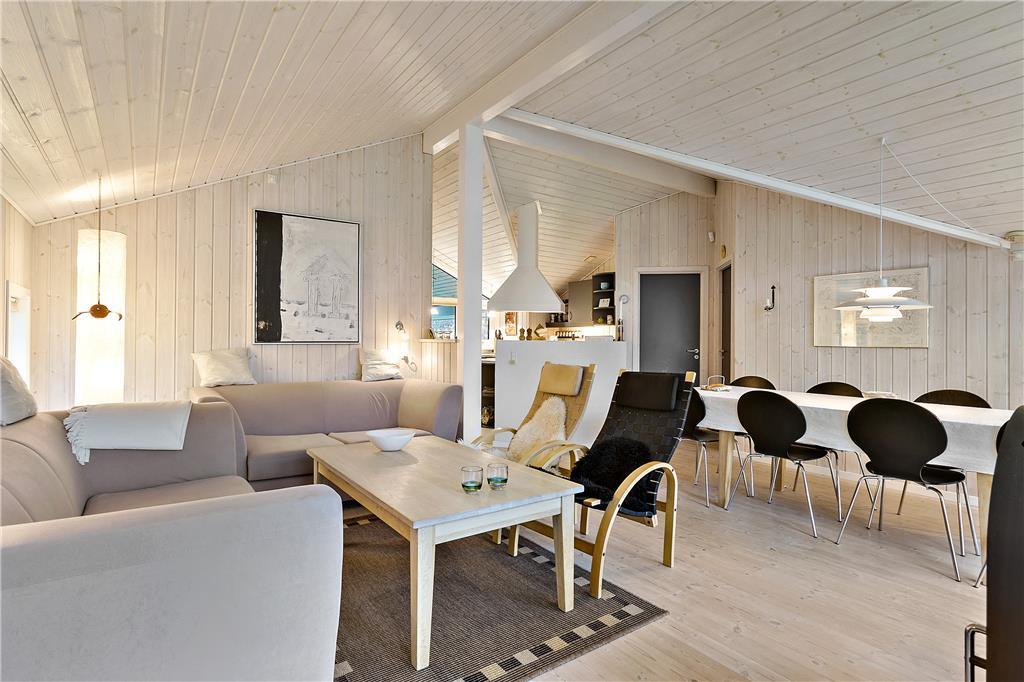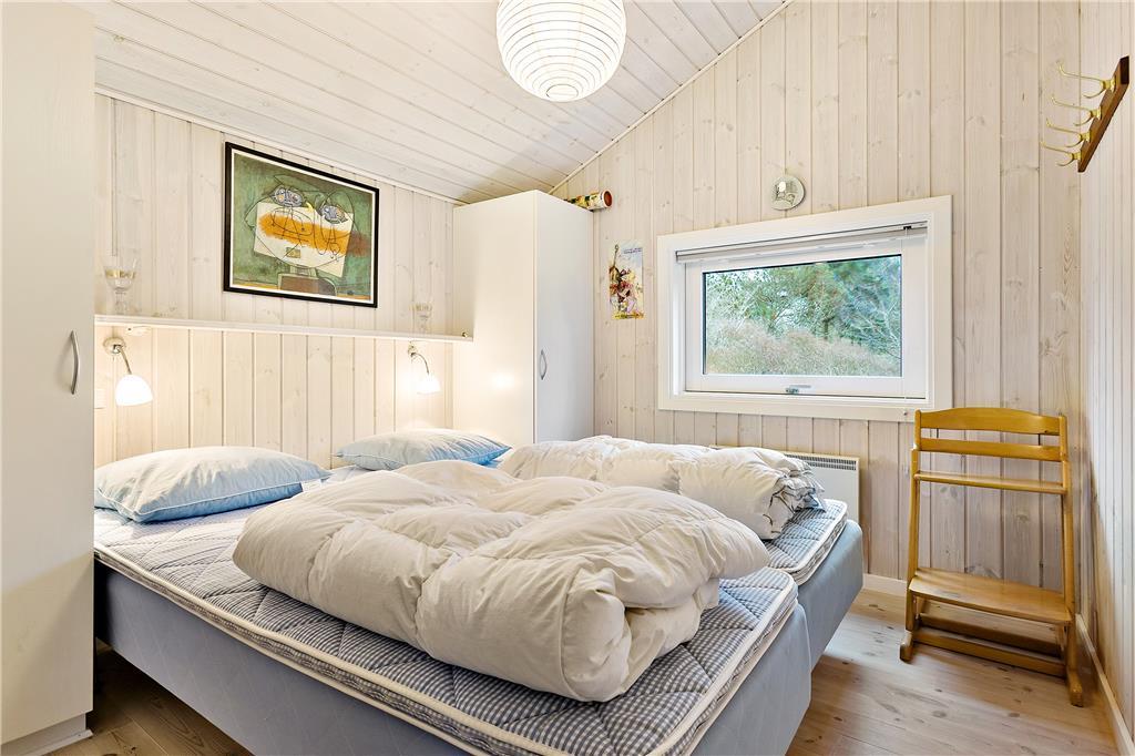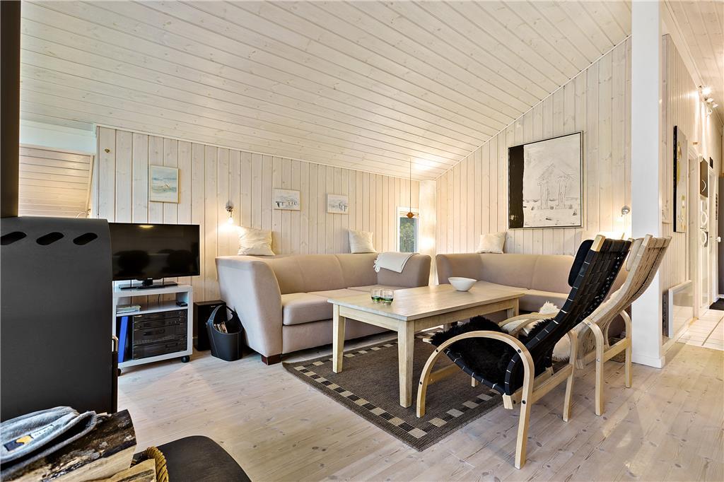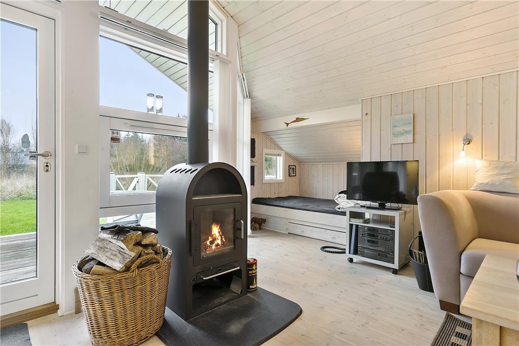 Sommerhuset er gennemgående lyst og venligt indrettet med pæne, klassiske møbler og højt til loftet. Fra entréen kommer man til det åbne køkken og sammenhængene stue med spiseplads, brændeovn og et stort vinduesparti, som både giver rummet et godt lysindfald og en dejlig udsigt til haven samt udgang til den delvise overdækkede terrasse – her er desuden en lille hyggelig alkove, som garanteret bliver populær blandt børnefamilier. Huset råder over tre værelser samt badeværelse med vaskemaskine. Her er desuden opvaskemaskine, parabol og trådløst internet, så alle nødvendige faciliteter må siges at være til stede og chancen for en vellykket og afslappende ferie er absolut i top!