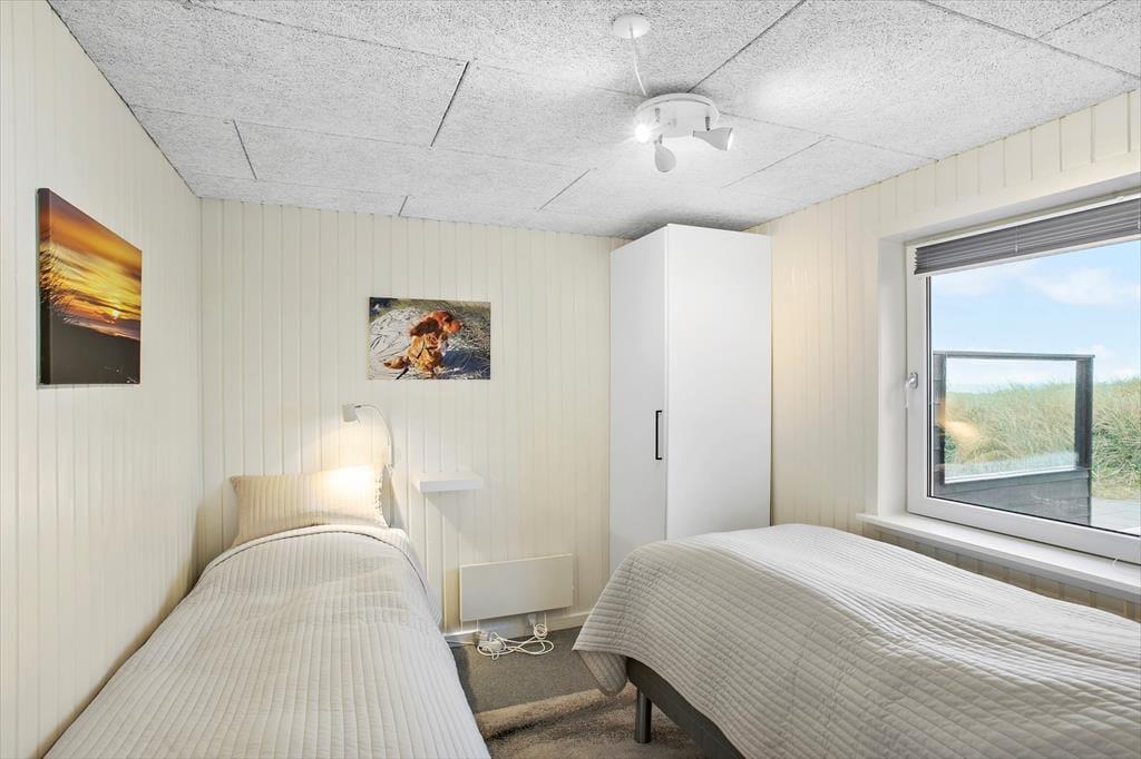 Man har kun 50 meter til strandkanten fra sommerhuset, og de forceres hurtigt via den private sti; morgen- og aftendukkert er næsten obligatoriske med den korte afstand! Huset er placeret på en 2736 m2 stor naturgrund og der er anlagt et flot terrasseareal, med en god overdækket del mod vest, som egner sig perfekt til grillhygge og solnedgange. Terrasserne vender til flere verdenshjørner, så det er altid muligt at finde en plads i solen eller i læ for Vestenvinden, som ofte kan være frisk, når man befinder sig så tæt på Vesterhavet. Der er naturligvis terrassemøbler, liggestole og grill til rådighed. Ved huset er der en hundegård, hvor der er 2 indbyggede sovepladser til hundene.