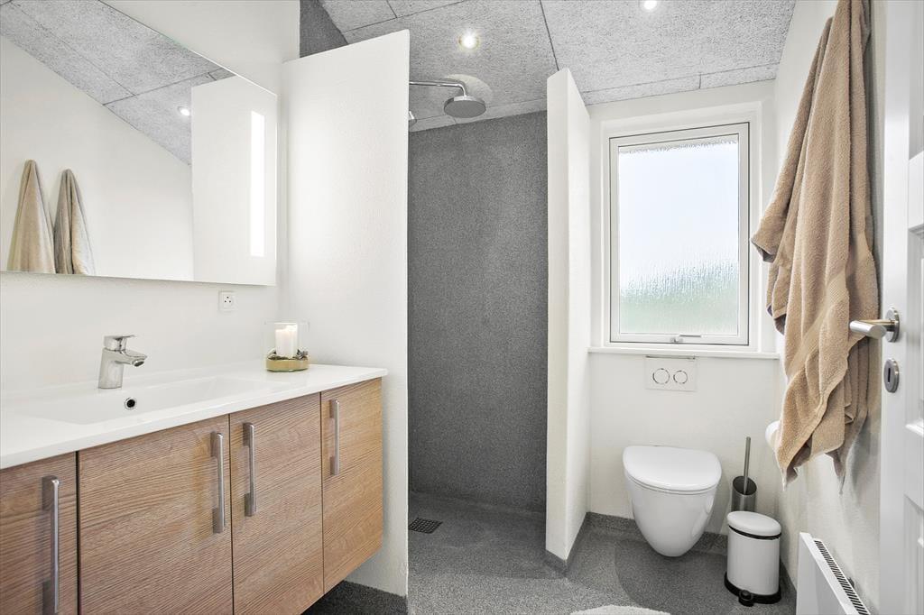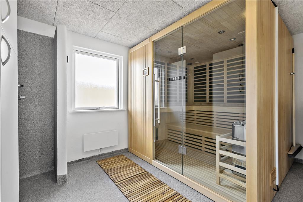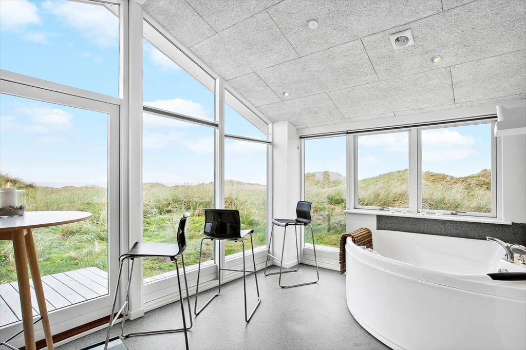 Den oprindelige del af huset, samt tilbygningen, giver i alt et 135 m2 gennemrenoveret kvalitetssommerhus med en fremragende beliggenhed for enden af vejen og på toppen af en klit med fantastisk udsigt over området og Vesterhavet. Huset er moderne indrettet og fra de mange glasfacader, som lukker det specielle nordjyske lys ind, har man direkte udsigt til den store klitgrund, som grænser lige op til stranden i Grønhøj. Køkkenet ligger i åben forbindelse med både spisepladsen og stuen, hvilket gør at alle kan være sammen, selvom man har forskellige gøremål. Den ene del af huset er indrettet som ”wellness-område” med bla. lækkert spabad, hvorfra man kan nyde havudsigten – herfra er der udgang til annekset med infrarød sauna og mulighed for et efterfølgende brusebad. Det er værd at bemærke de flotte og slidstærke epoxy gulve, som er gennemgående og dermed sætter sit positive præg på huset som opvarmes med varmepumpe, brændeovn og elradiatorer på værelserne (ingen gulvvarme).