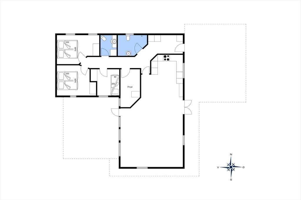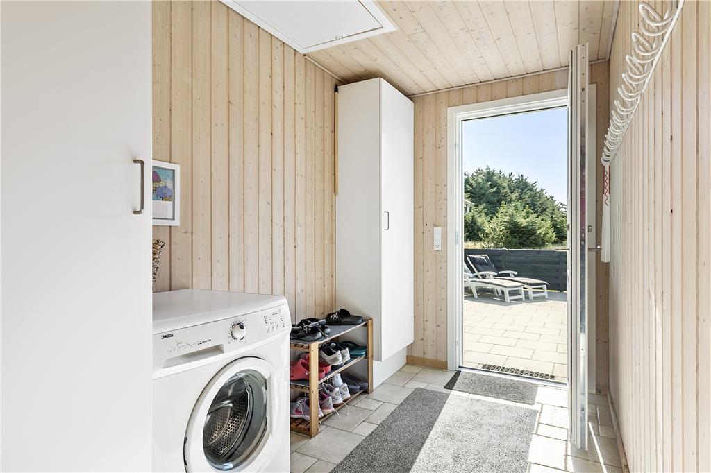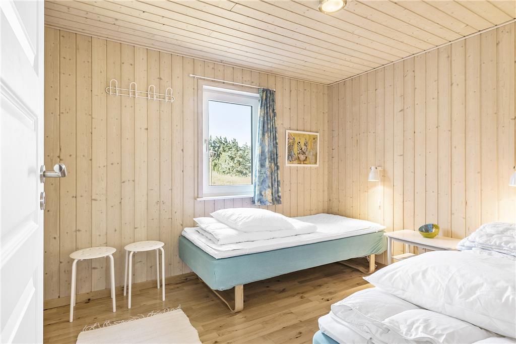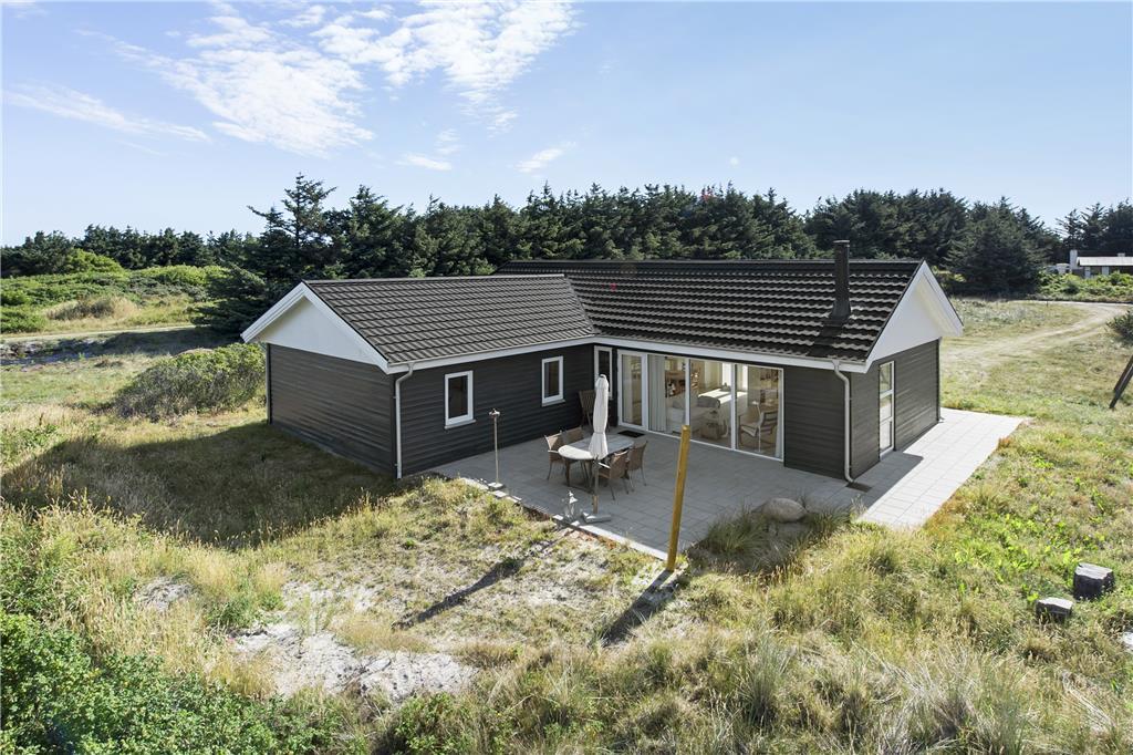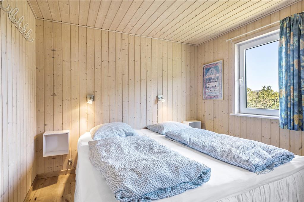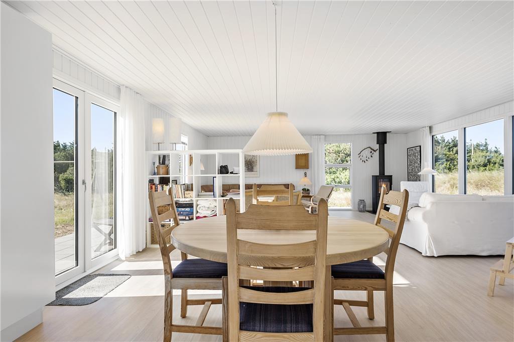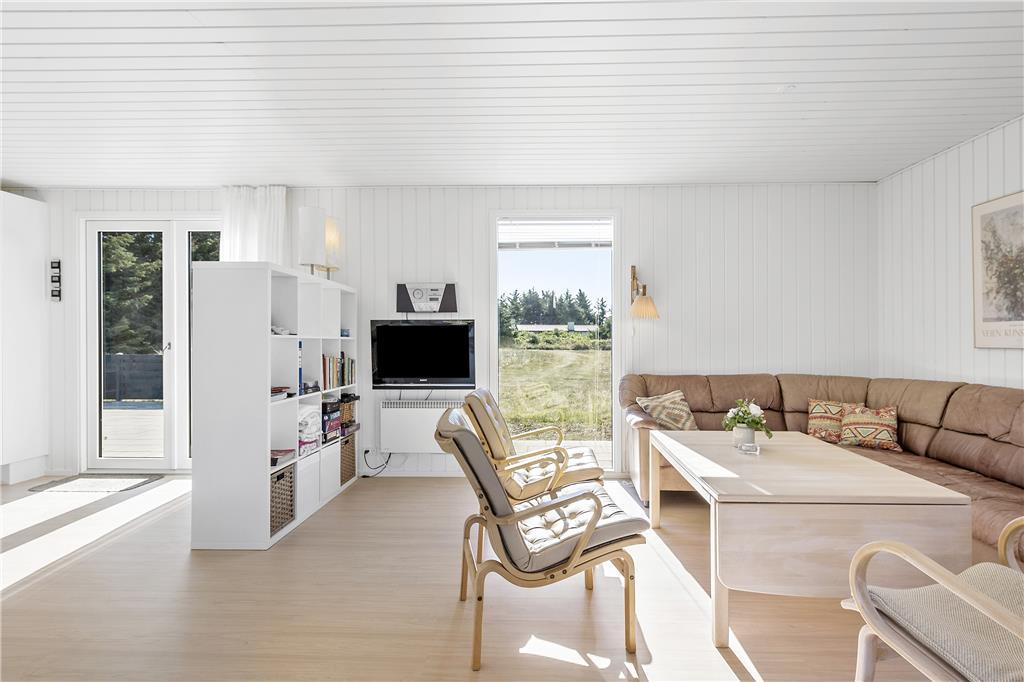 Dette sommerhus er veludstyret med en masse gode rammer og faciliteter samt trådløst internet, her mangler ikke noget. Indretningen og interiøret er holdt i en klassisk og charmerende stil med masser af lys fra de store vinduespartier i det åbne opholdsrum. Sommerhuset er velegnet til både familier og par, med 3 soveværelser og med et badeværelse og et gæstetoilet behøver man ikke vente på hinanden om morgenen. Midt i opholdsrummet står en brændeovn, som hurtigt spreder varme og hygge på de kolde dage, mens man om sommeren kan træde ud på de åbne terrasser som omkranser huset. Hele sommerhuset byder på virkelig gode forhold for både voksne og børn!