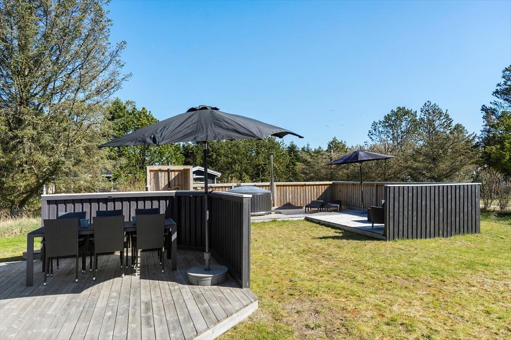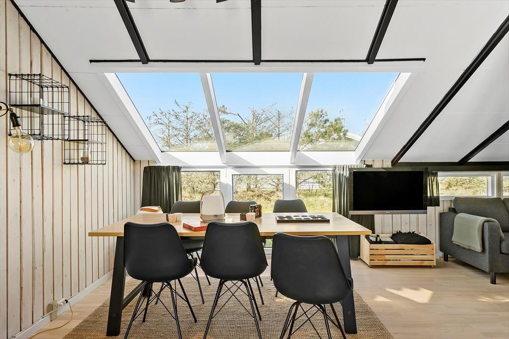 Sommerhuset ligger i bunden af en lukket vej, og det er blot med til at understrege den fredelige og afslappende atmosfære, der hviler her på adressen. Skal hele ferien ikke bruges på at tage den med ro, har I også rig mulighed for at være aktive i naturen, for Grønhøj er et smukt område, der lægger op til vandreture og cykeludflugter. En badetur i ny og næ kan måske også friste, og i så fald er det herligt at bo omtrent en kilometer fra Vesterhavet og den smukke Grønhøj Strand.