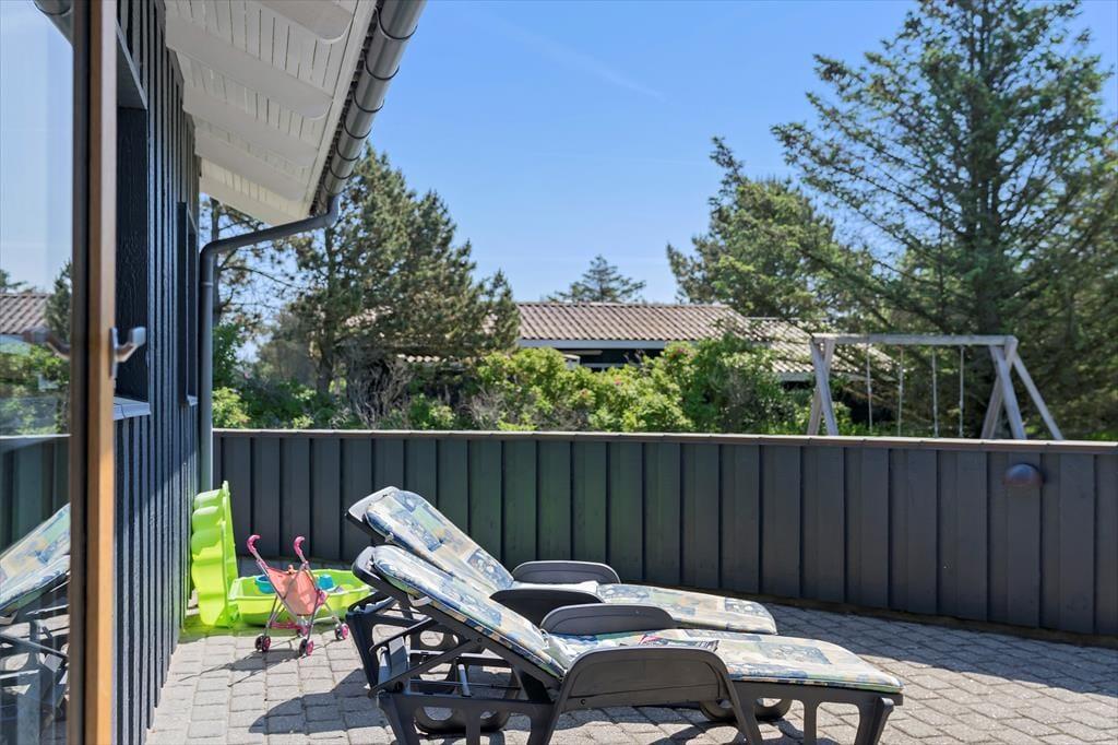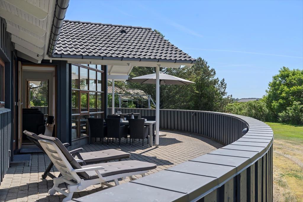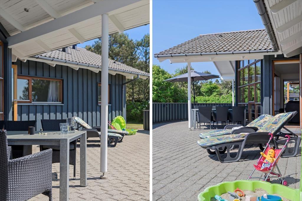 Rundt om sommerhuset er der flere dejlige terrasser at vælge imellem, så I kan sætte jer lige der, hvor der er mest sol og læ. Syd terrassen kan sikkert hurtigt blive favoritten, for den er ekstra stor og delvist overdækket, og så ligger den med udsigt over det grønne areal, der grænser op til grunden. Har I medbragt bolde, frisbee’er eller vikingespil, kan I boltre jer på græsplænen, og grundens grus areal er så stort, at der nemt kan holde flere biler.