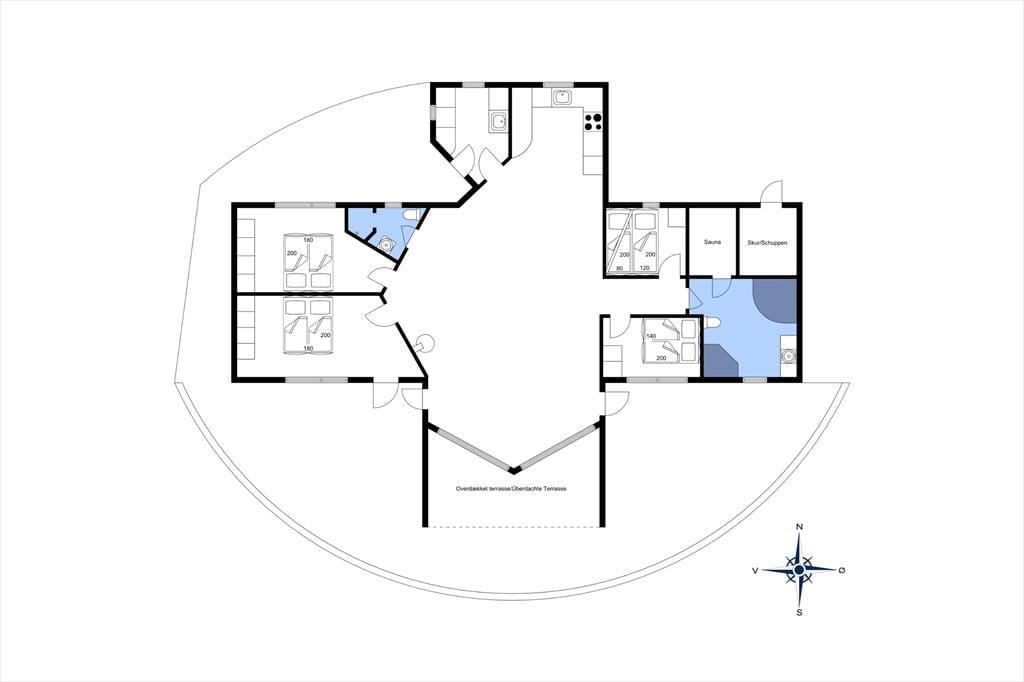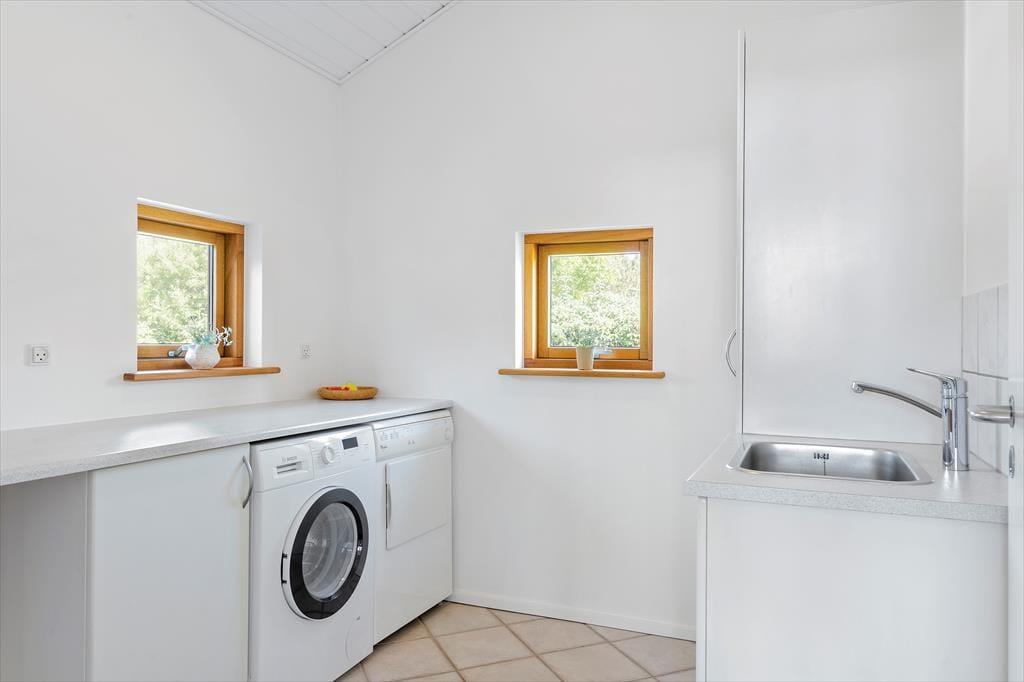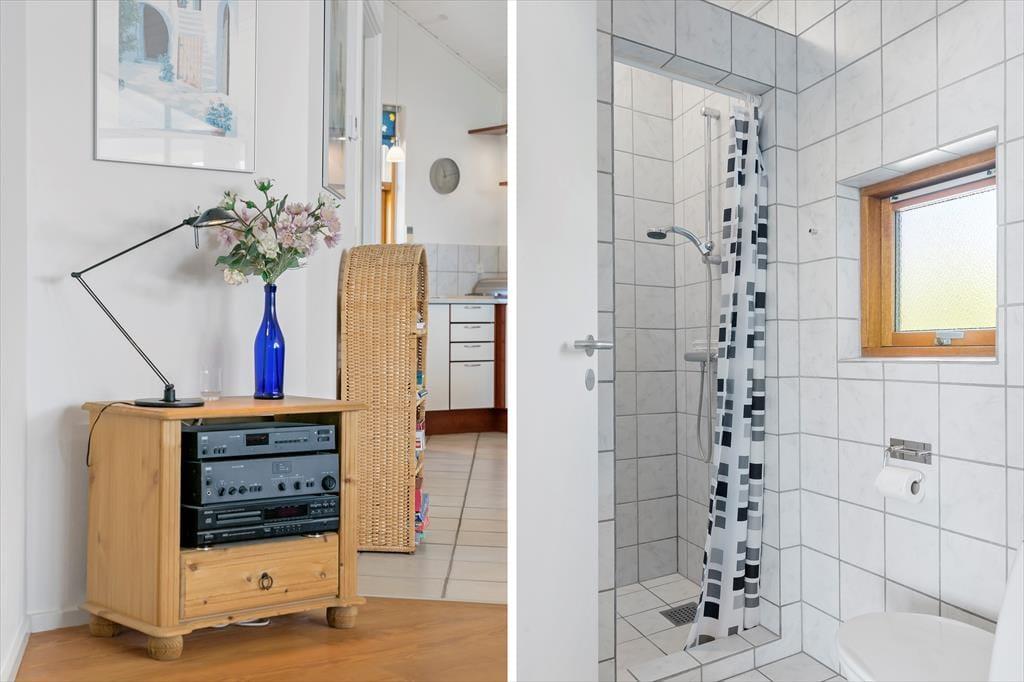 Det 150 m2 store sommerhus er blevet moderniseret på vellykket vis i 2021, så det fremstår lyst og indbydende. Planløsningen er perfekt til otte personer, for der er fire soveværelser at gøre godt med, hvoraf tre er med dobbeltseng og det fjerde med køjeseng. I begge ender af huset finder I et badeværelse, og på det største er hjørnespaen og saunaen med til at forsøde ferielivet. Sommerhuset har også et praktisk bryggers, og lige ved siden af ligger et veludstyret køkken i åben forbindelse med stuen. Her er atmosfæren ekstra lys og luftig takket være den flotte loftshøjde og det store sydvendte vinduesparti, der inviterer solen indenfor og giver udsigt til det naturskønne sommerhusområde. Med brændeovn, fladskærms-tv og bløde sofaer er der lagt op til hygge og afslapning inden døre, og havedørene gør det nemt at tage terrassen i brug, når vejret er godt.