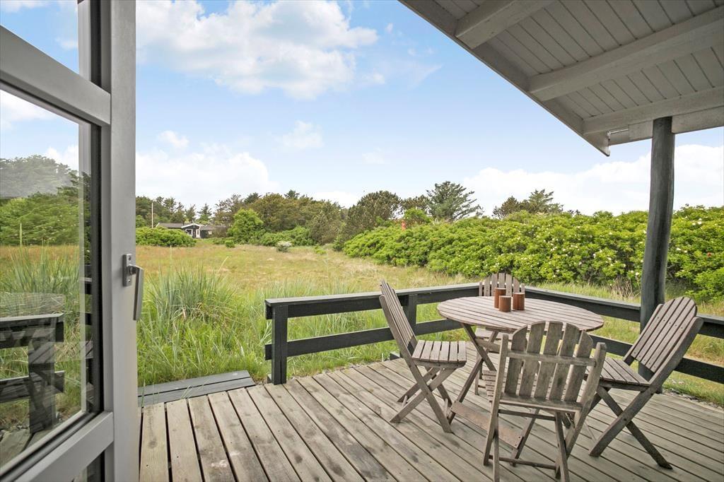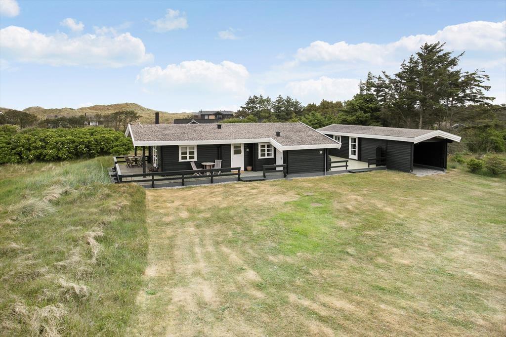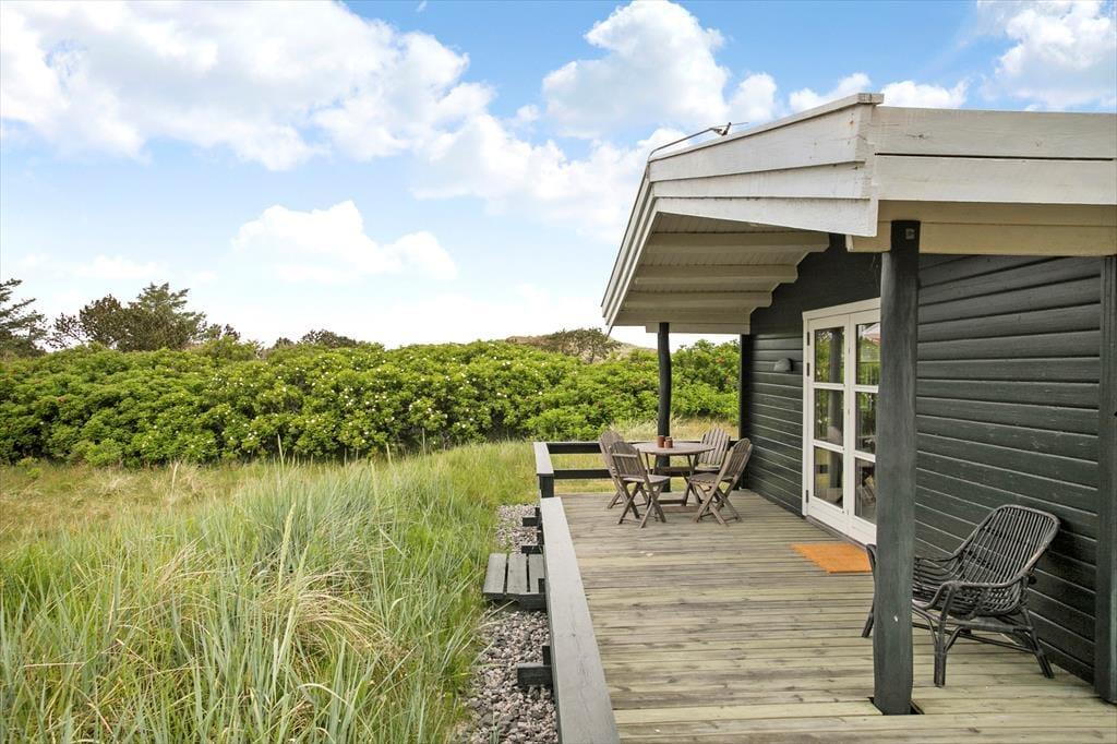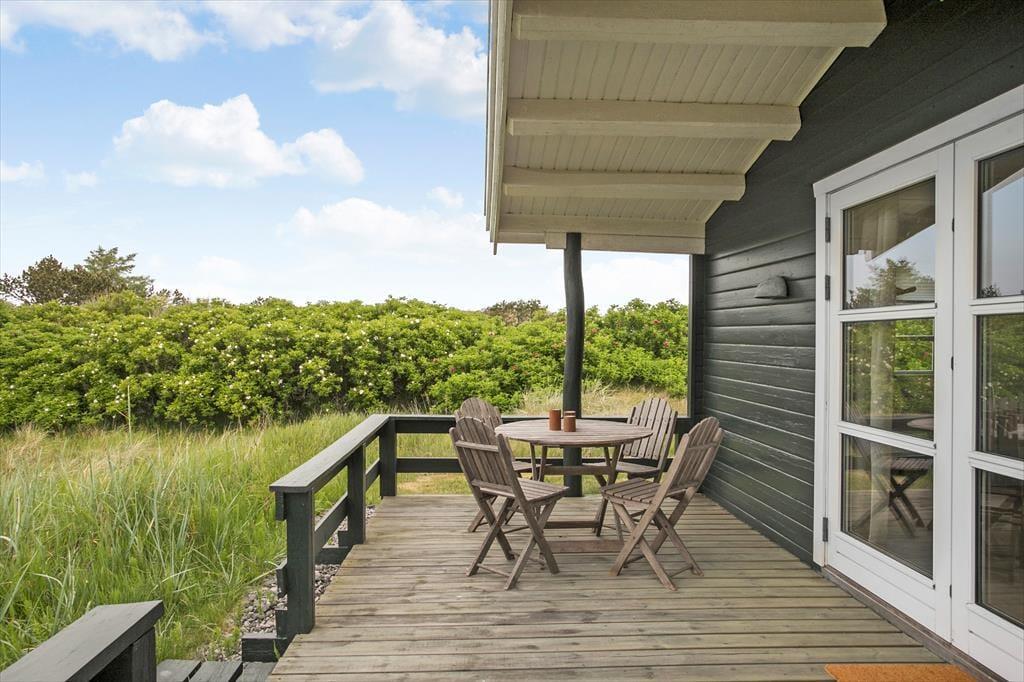 De skønne terrasser omkring huset er det perfekte sted at nyde sommerlivet. Her kan du starte dagen med morgenkaffe i den friske luft, grille lækre middage og lade børnene lege frit på den store græsplæne. Den naturskønne grund indbyder til afslapning og udendørs aktiviteter, og du kan altid finde en solrig eller skyggefuld plet på terrassen. Om aftenen er det et must at tage plads i liggestolen og nyde den smukke solnedgang over Vesterhavet, som kun ligger en kort gåtur væk. Der er også rig mulighed for at udfordre familien i et spil kroket eller blot slappe af med en god bog.