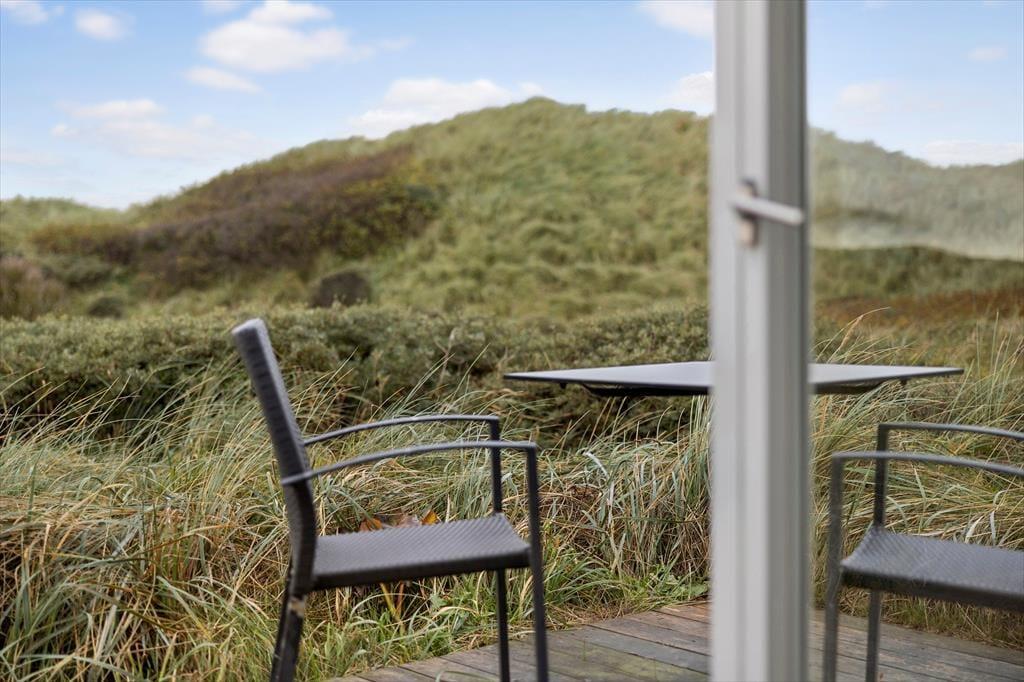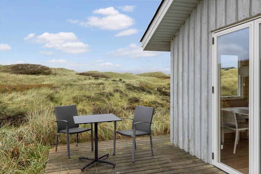 Det er skønt at hygge sig inden døre, men så snart solen skinner over Grønhøj, er det nu fristende at rykke driverlivet ud på terrassen. Den breder sig hele vejen rundt om huset, så I har flere opholdspladser at vælge imellem, inden I slår jer ned i havestolene. Overalt breder det marehalmsklædte landskab sig, og hvis I sætter jer mod vest, kommer I endda til at sidde i første parket, når solen sænker sig bag den yderste klitrække.