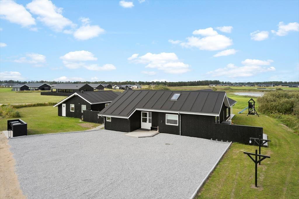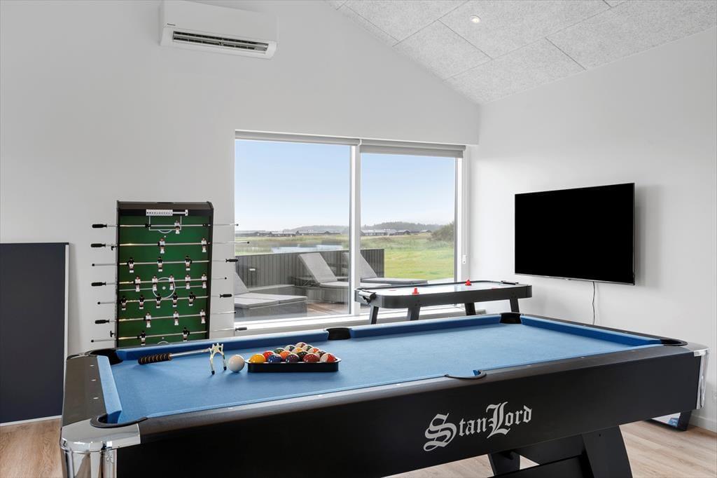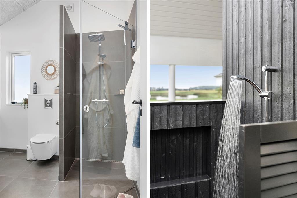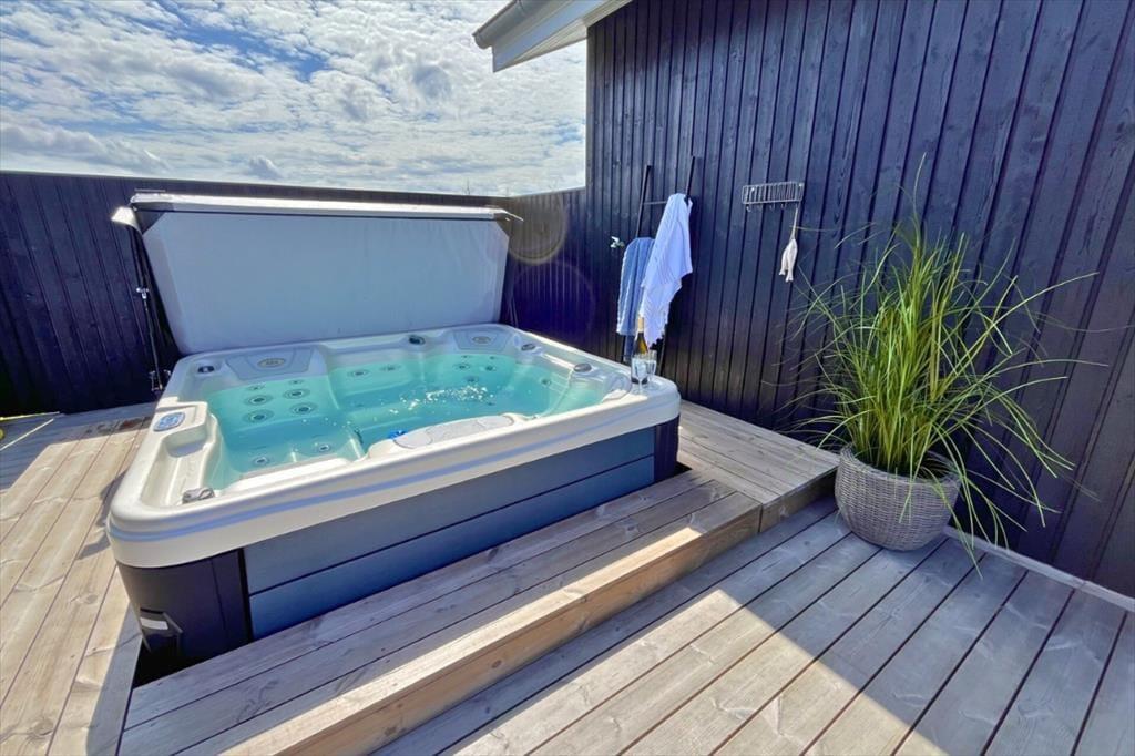 Udendørs rummer dette sommerhus et væld af muligheder for afslapning og aktiviteter. Den store terrasse på 250 m2 er opdelt i flere solkroge, hvor du kan nyde solen fra morgen til aften. Den udendørs spa er det oplagte sted at nyde stjernehimlen og lade roen sænke sig i de varme bobler. Når du har lyst til at køle af, kan du tage en frisk bruser under den udendørs bruser. Sommerhusets store grund indbyder til leg og spil, og i annekset finder du et aktivitetsrum, hvor der kan dystes i bordfodbold, bordtennis, pool eller air hockey. Annekset rummer også ekstra værelser og et badeværelse, hvilket gør det ideelt til gæster eller de større børn, der ønsker lidt mere privatliv.