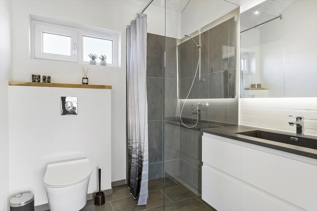 Dette store og lækre kvalitetshus fra 2022 har en stilfuld indretning og en gennemtænkt planløsning, og ude omgives det af det skønneste terrassemiljø. Også beliggenheden er attraktiv, for på danmarkskortet befinder I jer på en lukket vej nær vestkysten i naturskønne Grønhøj.