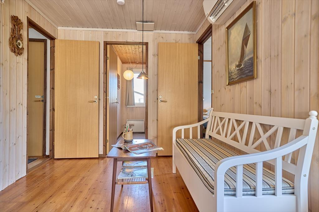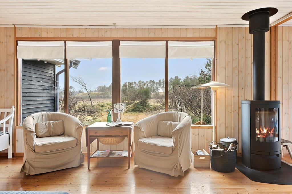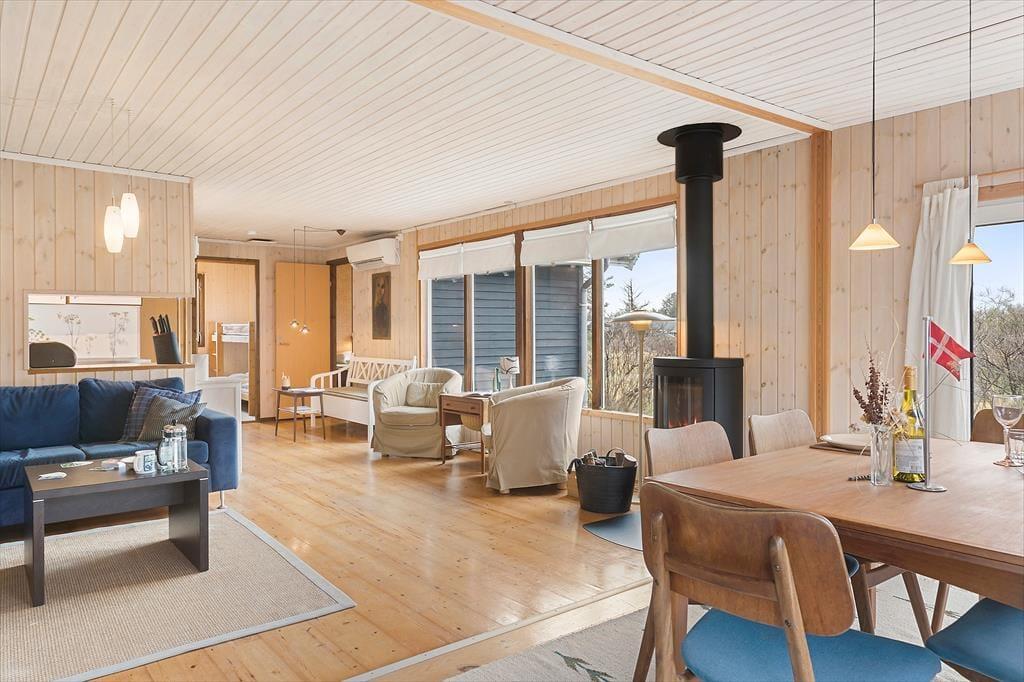 Sommerhuset har en rar atmosfære inden døre, så du kan hurtigt føle dig hjemme og være klar til at ryste hverdagens stress og jag af dig. Er det køligt udenfor, kan du tænde op i brændeovnen og sætte dig godt til rette i sofaen – eller i et af de andre komfortable siddemøbler i det hyggelige opholdsrum. Køkkenet er integreret med stuen, så hvis du løber tør for kaffen, kan du hurtigt smutte hen til kaffemaskinen for at brygge noget mere, og selv når det er tid til at lave aftensmad, er det muligt at holde hyggesnakken i gang på tværs af rummet. Planløsningen byder på et badeværelse og to soveværelser, mens annekset byder på et ekstra sovegemak.