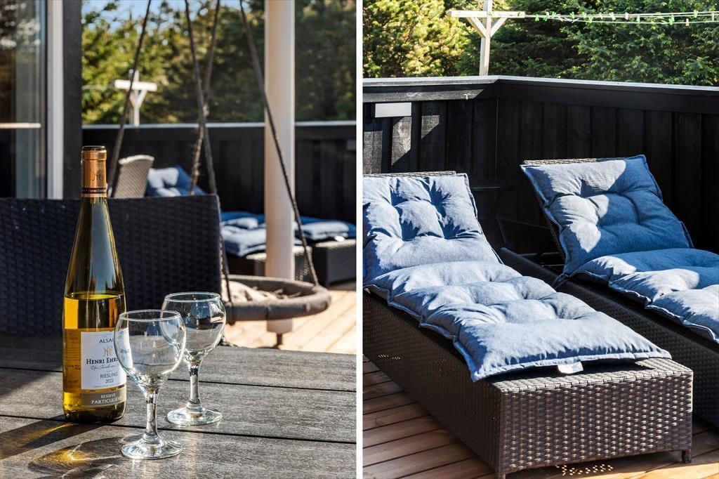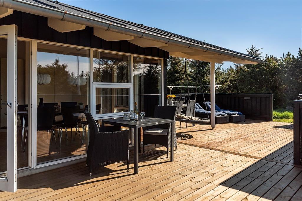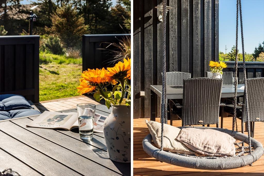 Sommerhusets store terrasse indbyder til mange afslappende stunder under åben himmel. Her kan du starte dagen med en kop kaffe, mens solen stiger på himlen, eller nyde en lækker middag tilberedt på grillen, mens aftensolen kaster sine gyldne stråler over terrassen. Grunden omkring huset er skøn og solrig med masser af plads til leg og boldspil, og der er rig mulighed for at finde både sol og skygge gennem hele dagen. Uanset om du vil slappe af med en bog i liggestolen eller udfordre familien i et spil kroket, giver den store grund de perfekte rammer for en dejlig ferie.