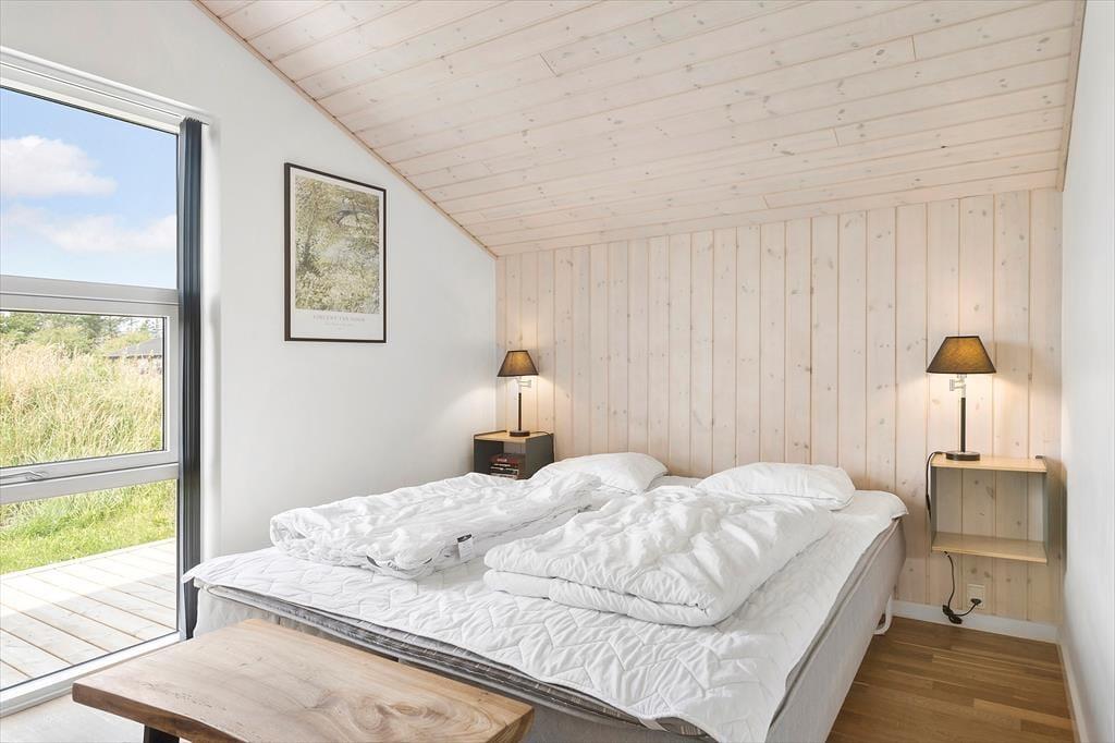 Indenfor byder sommerhuset på en lys og luftig atmosfære med loft til kip og et dejligt lysindfald gennem de store vinduer. De fire soveværelser giver god plads til hele familien, og det ene soveværelse har endda et praktisk walk-in-closet, hvor der er plads til alt ferietøjet. I den store stue kan du slappe af foran brændeovnen og nyde de hyggelige aftener med familien. Den åbne planløsning mellem køkkenet og spiseafdelingen gør det let at tilberede lækre måltider sammen, mens samtalerne flyder frit. Når dagen går på hæld, kan du forkæle dig selv i det ene badeværelse, som er udstyret med både spa og sauna – den perfekte afslutning på en dag fyldt med oplevelser.