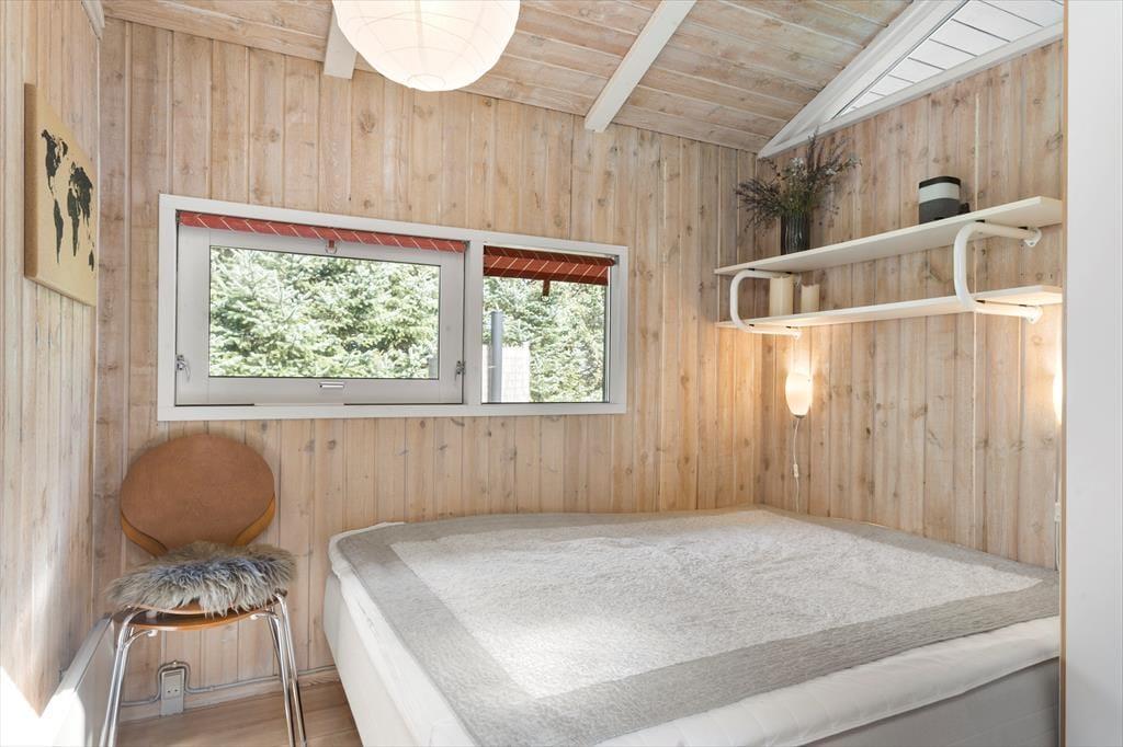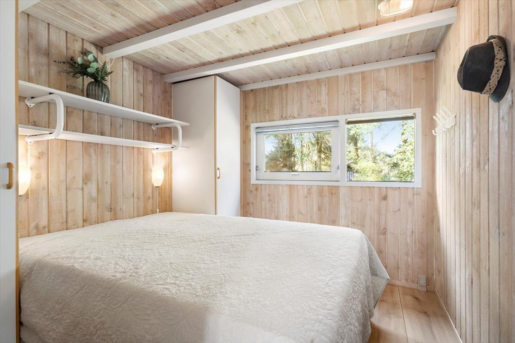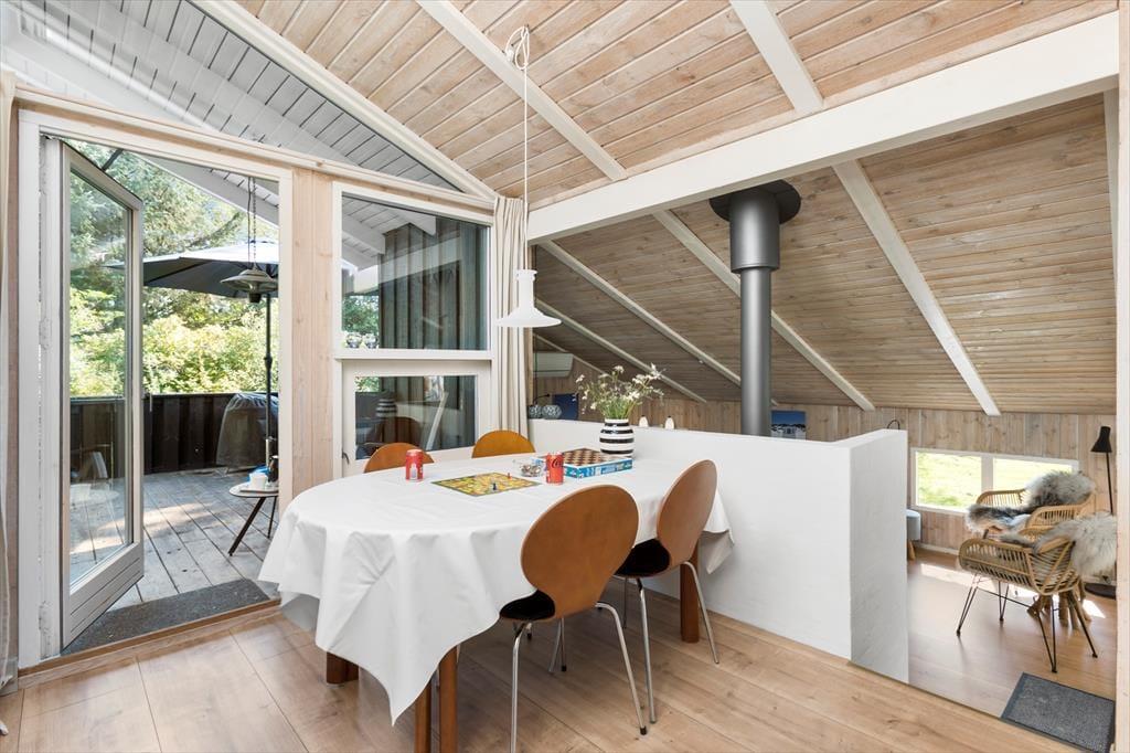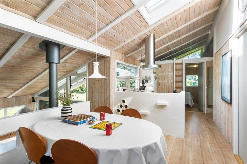 I det lyse og indbydende sommerhus finder du tre gode soveværelser og et badeværelse, der sammen danner rammen om en afslappende ferie. Sommerhuset er indrettet med køkken og stue i åben forbindelse, hvilket skaber et sammenhængende og hyggeligt opholdsmiljø. Fra køkkenet kan du holde øje med madlavningen, mens du stadig er en del af snakken i stuen, hvor store vinduespartier sørger for et flot lysindfald hele dagen. Når solen går ned, kan du finde hyggen foran brændeovnen og mærke den særlige ro, der sænker sig i sommerlandet. Huset er designet til afslapning og hygge, hvilket gør det til en perfekt base for en afslappende ferie.
