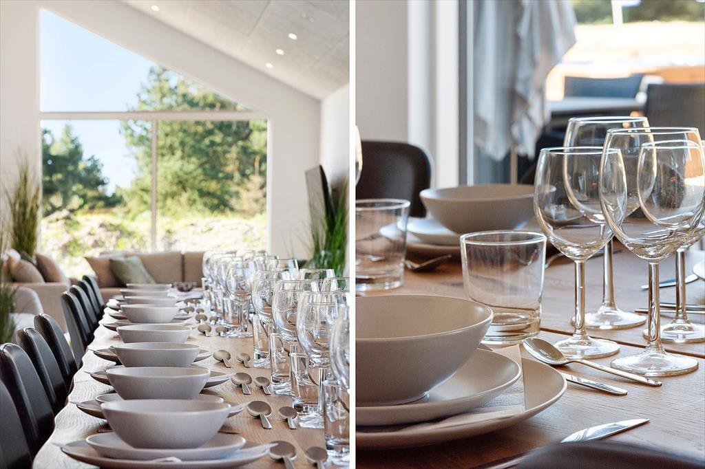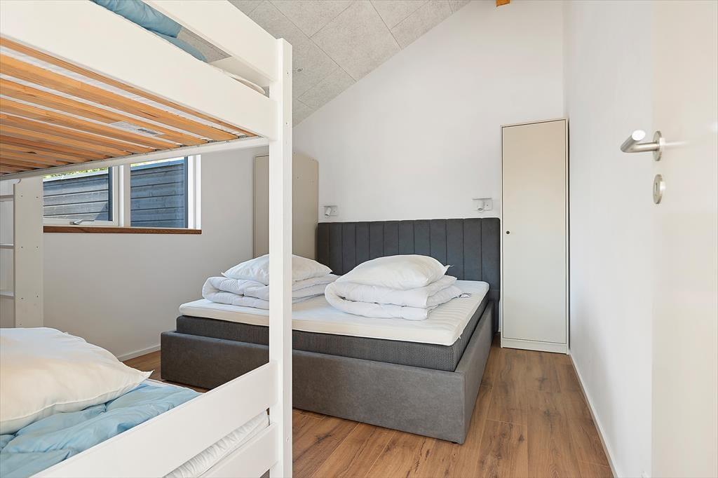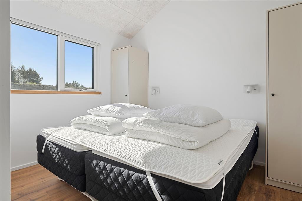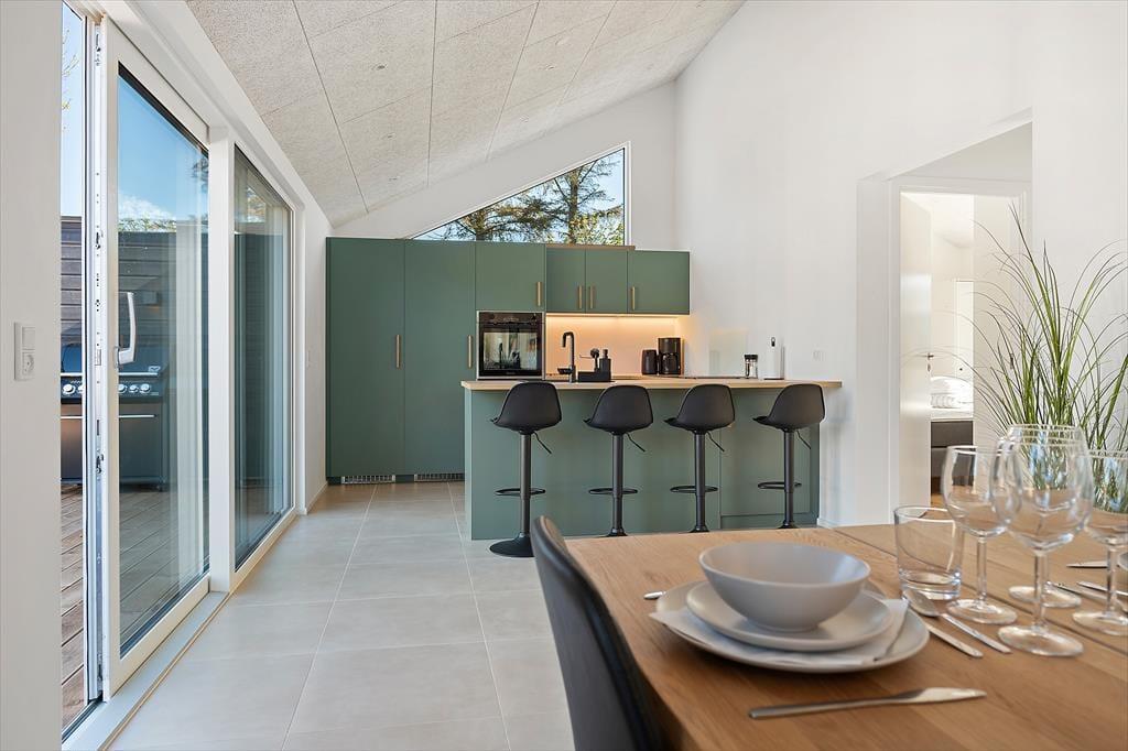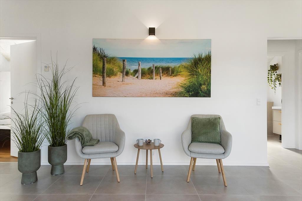 Inden døre er alt indrettet med tanke på den gode ferieoplevelse. Sommerhuset emmer af kvalitet og moderne komfort og er skræddersyet til ferier med mange mennesker – hvad enten det er hele familien, flere vennepar eller måske tre generationer samlet. De lyse rum indbyder til samvær, og det åbne opholdsmiljø skaber en skøn ramme for både madlavning, spil og hyggeaftener. Det veludstyrede køkken ligger i åben forbindelse med stuen, så du kan stå ved gryderne og stadig følge med i samtalen eller se børnene lege. Når I trænger til at koble helt af, kan I tage en tur i saunaen eller i spabadet på terrassen. Og for de mere energiske er aktivitetsrummet med både billardbord og airhockey et oplagt sted at udfordre hinanden på sjov og uformel vis – uanset alder.