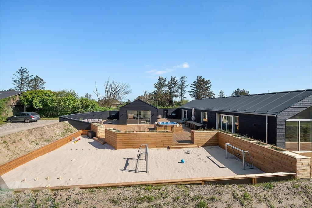 Drømmer du om en ferie med masser af komfort og plads til samvær under åben himmel? Så er Redningsstien 2 i Grønhøj det perfekte sted. Her venter et nyopført sommerhus fra 2025 med plads til hele familien – eller måske to – og både sauna, udendørs spabad og aktivitetsrum giver jer alletiders rammer for både afslapning og sjov. Med kun 500 meter til Vesterhavet og en enestående 350 m2 stor, lukket terrasse får du det bedste fra både inden- og udendørslivet.