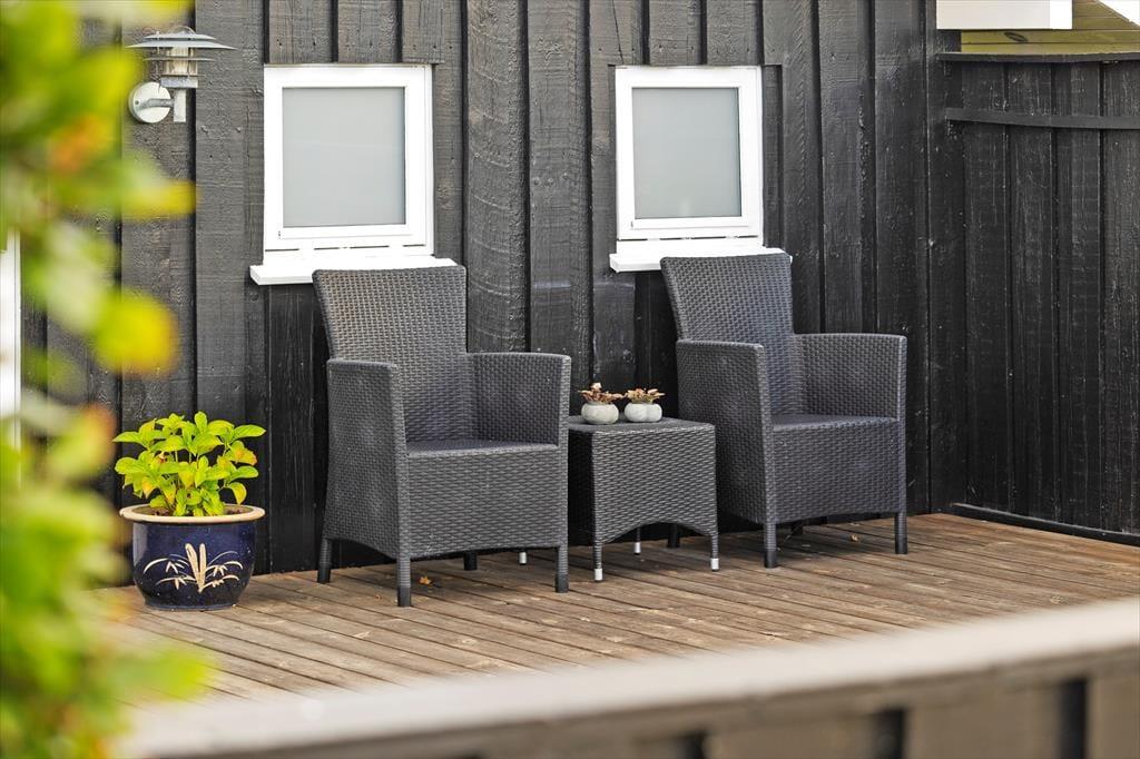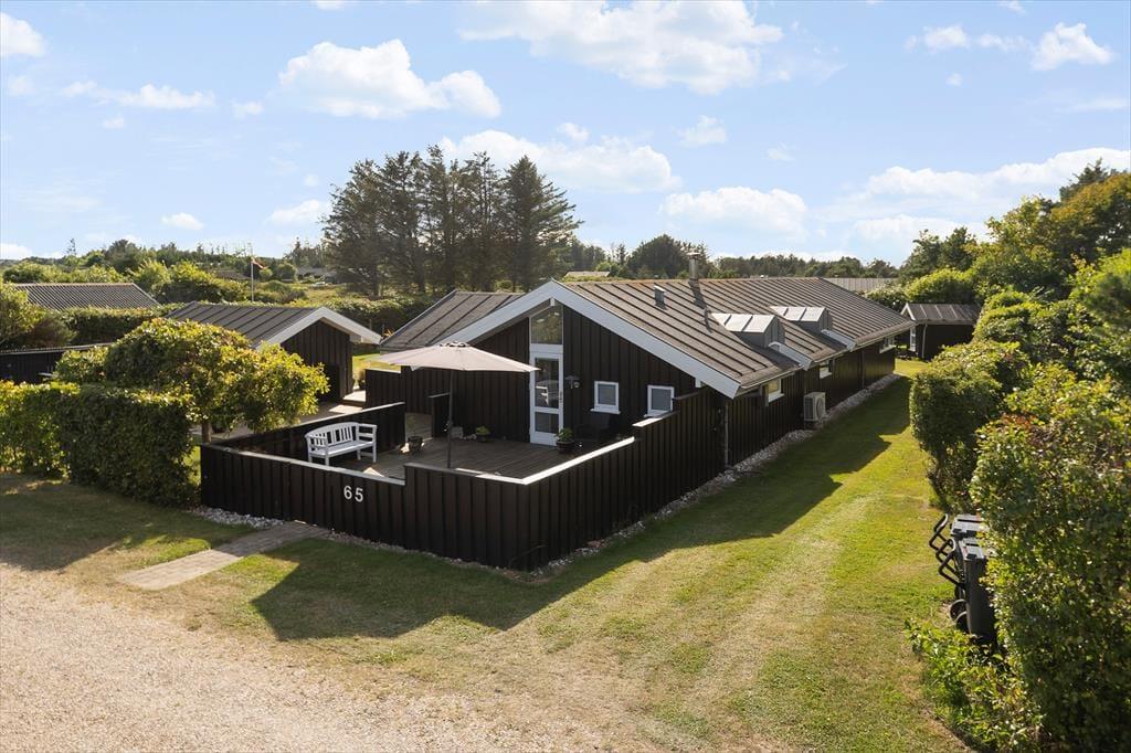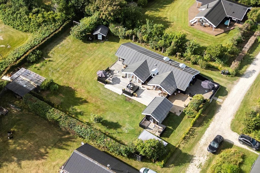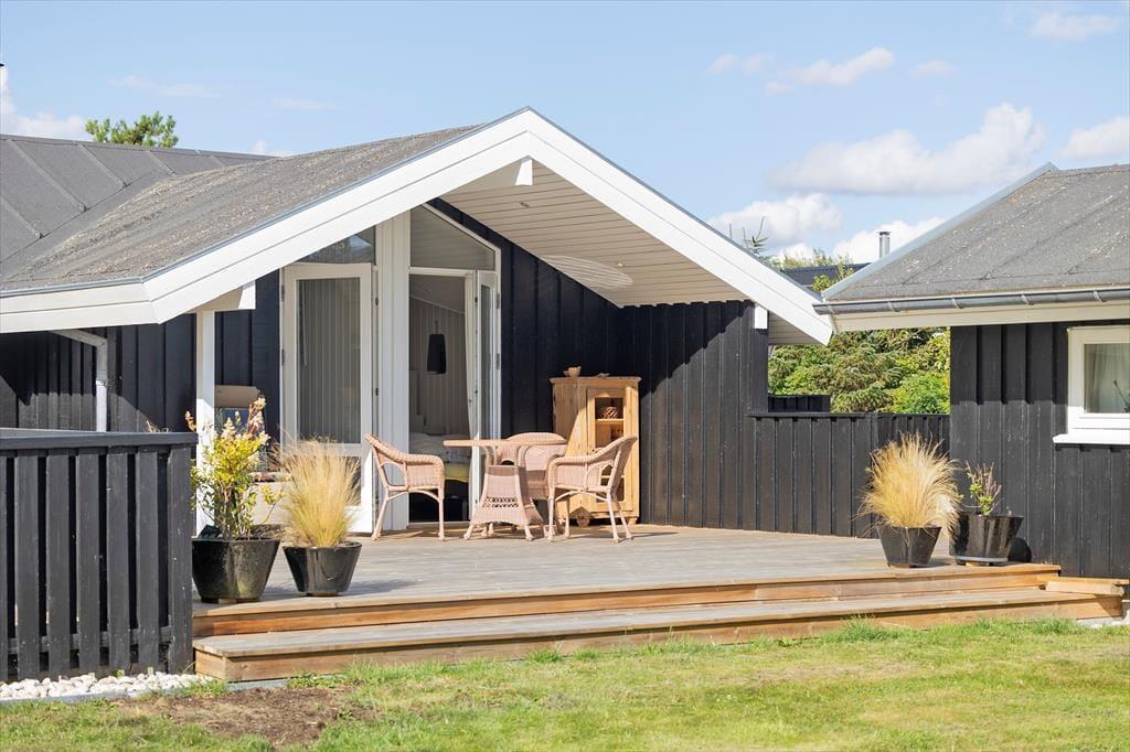 Sommerhusets mange terrasser indbyder til ferieliv under åben himmel fra morgen til aften. Slå dig ned i en af de komfortable loungemøbler med en kop kaffe, mærk den friske havluft og lyt til fuglenes sang. På den store grund er der plads til, at børnene kan lege frit, mens de voksne finder en solplet eller et skyggefuldt hjørne alt efter humør. Fra udestuen kan du træde direkte ud på terrassen, hvor der er oplagt at nyde måltiderne i det fri. Som gæst har du også adgang til områdets fælleshus, hvor en indendørs pool, sauna, vaskemaskine og tørretumbler står til rådighed. For de mindste er legepladsen ved fælleshuset et sikkert hit.