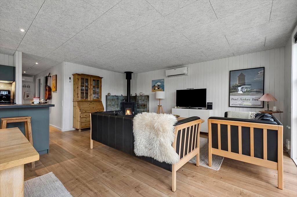 Sommerhuset er indrettet i en indbydende og lys stil, hvor både stuen og køkkenet har fået nyere opdateringer. Det åbne køkken er praktisk for dig, der nyder at lave mad, for her kan du sagtens være en del af snakken, mens resten af familien slapper af i stuen. Store vinduespartier sørger for et naturligt lysindfald, og på køligere dage kan du tænde op i brændeovnen og mærke den hyggelige varme brede sig. Huset rummer to gode soveværelser samt et badeværelse, så der er plads til afslapning for hele familien. Det nyrenoverede anneks giver jer ekstra fleksibilitet – her finder du både et aktivitetsrum, hvor store og små kan more sig, og en soveplads, der gør det oplagt at tage bedsteforældre eller gode venner med på ferie.