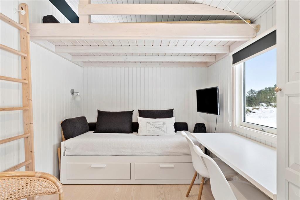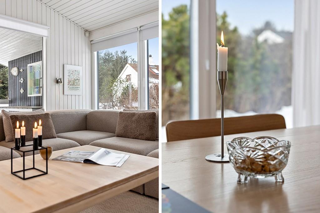 Sommerhuset er indrettet med fokus på lys, hygge og gode rammer for samvær. Hjertet i huset er stuen, som ligger i åben forbindelse med det stilfulde og rummelige køkken. Her kan du trylle med lokale råvarer, mens snakken går omkring spisebordet, eller I kan samles i sofaen med en film og lade brændeovnens knitren sætte stemningen, når aftenen falder på. Planløsningen giver god plads til familien med to fine værelser, et hyggeligt anneks samt to lækre badeværelser. Hele huset emmer af en afslappet sommerhusstemning, hvor det er let at føle sig hjemme fra første øjeblik.