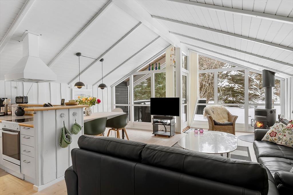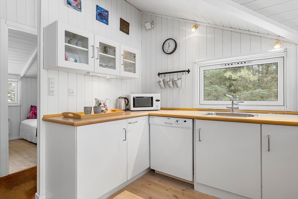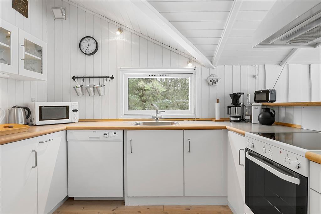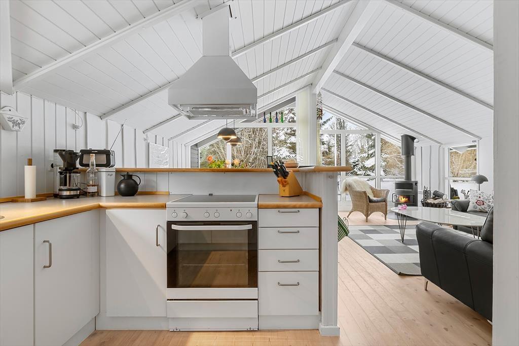 Inden døre mødes du af lyse rum og en behagelig atmosfære, hvor ferien hurtigt kan få lov at folde sig ud. Sommerhusets hjerte er køkkenet, der ligger i åben forbindelse med stuen, så samværet er i fokus, uanset om der bliver lavet morgenkaffe eller tilberedt aftensmad med lokale råvarer. Her kan snakken flyde frit, mens duften af nybagt brød eller friskfanget fisk breder sig i rummet. Det generøse lysindfald fra vinduerne skaber en naturlig forbindelse til omgivelserne udenfor og giver stuen en indbydende ro, der indbyder til afslapning i sofaen med en god bog eller en hyggelig filmaften. Sommerhuset rummer tre gode værelser, som giver plads til både familie og venner, og badeværelset er en sand oase med gulvvarme, sauna og spa – ideelt til at forkæle kroppen efter en lang dag med strandture og oplevelser i det fri.