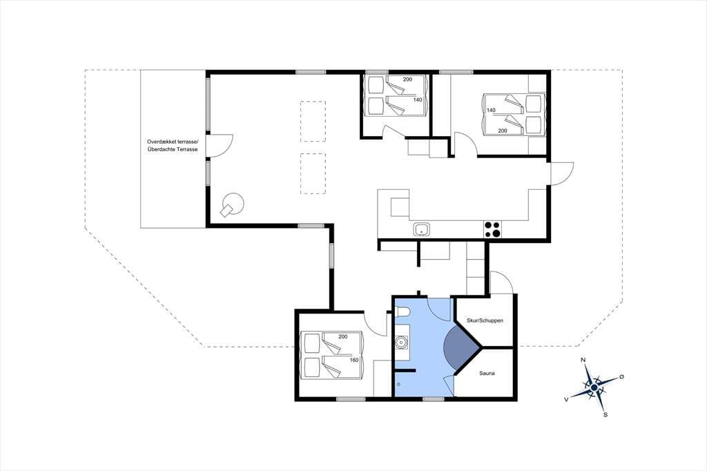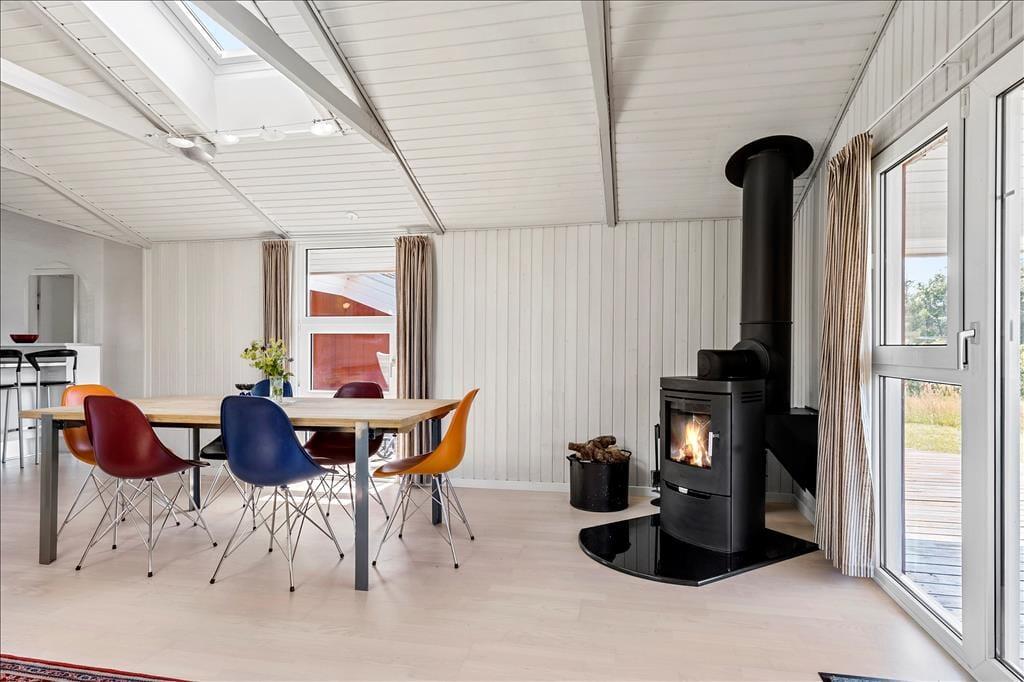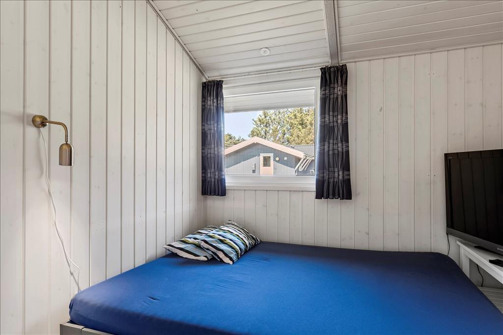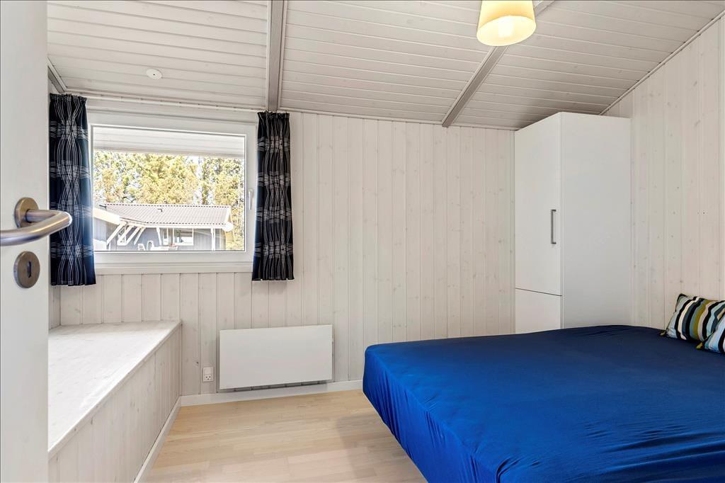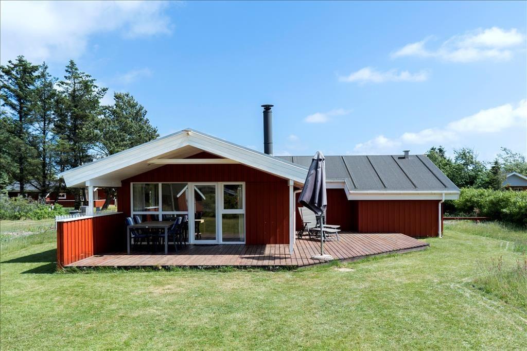 Sommerhuset har gennemgået en omfattende renovering og fremstår i dag i absolut topform. Fra indgangen kommer man direkte ind i det lyse og moderne køkken med højglansskabe og opvaskemaskine. I forlængelse heraf ligger stuen, hvor tagvinduerne giver et flot lysindfald. Stuen er lys og venlig og giver nem adgang til den delvist overdækkede terrasse. Sommerhuset råder over tre soveværelser, alle tre med dobbeltseng. På det flotte og lyst indrettede badeværelse kan man slappe af i spabadet og saunaen; her er kort sagt alt, hvad man kan forlange af en god og vellykket ferie.