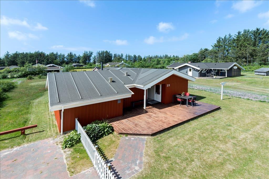 Kun 850 meter fra den kilometerlange, hvide sandstrand ligger sommerhuset i det naturskønne område Grønhøj. Her er et overflod af smuk natur, skov og klitlandskab og en meget børnevenlig badestrand. I Løkken kan man handle, shoppe, spise og opleve de traditionelle hvide strandhuse og den flotte mole på stranden.