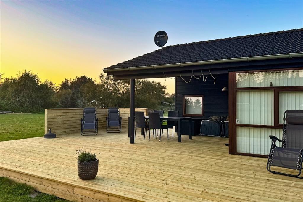 Dette atmosfærefyldte luksus sommerhus ligger i det børnevenlige ferieområde i Grønhøj. Her ligger en af Nordeuropas flotteste sandstrande, som strækker sig fra Blokhus til Løkken og hvert år får tildelt det blå flag, som en garanti for den gode vandkvalitet.