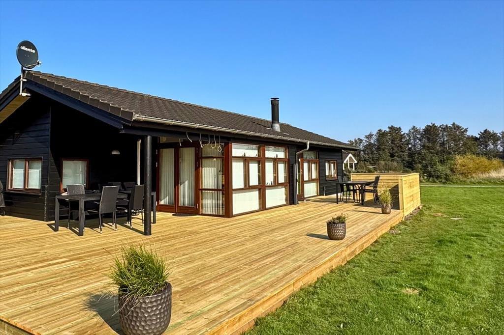 Dette hyggelige sommerhus med spabad og sauna bærer præg af ejerens sans for god smag og ligger midt i Grønhøjs flotte natur tæt på en af Nordeuropas flotteste sandstrande.