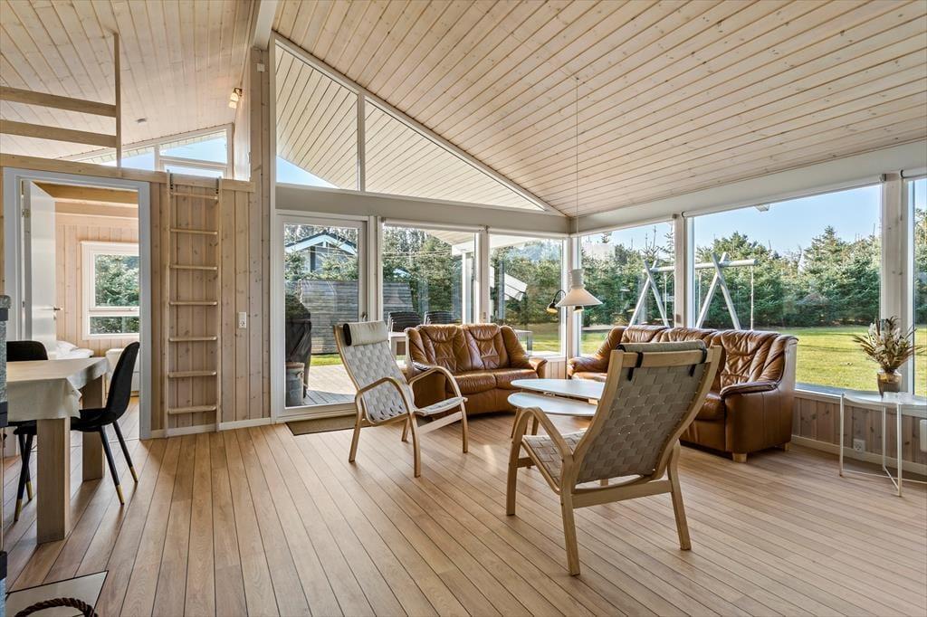 Sommerhuset er flot renoveret og opført med kvalitet som nøgleord, og man fornemmer fint, at ejerne har sat deres personlige præg på indretningen. Overalt er gode og pæne møbler og moderne faciliteter, eks. gratis og trådløst internet. Det store og åbne opholdsrum med køkken, spisebord og stue, er centralt placeret og vil hurtigt blive familiens samlingspunkt. I stuen er et hyggeligt sofaarrangement med mange siddepladser, her kan man bruge de kølige aftener foran tv’et eller med en god bog i varmen fra brændeovnen. Derudover rummer huset to badeværelser, fire værelser, to hemse og har direkte udgang til to terrasser. Børnefamilier vil sætte pris på opvaskemaskine, vaskemaskine, tørretumbler og seng og stol til de mindste. Alt i alt et velegnet og funktionelt sommerhus til en uforglemmelig familieferie i det nordjyske.